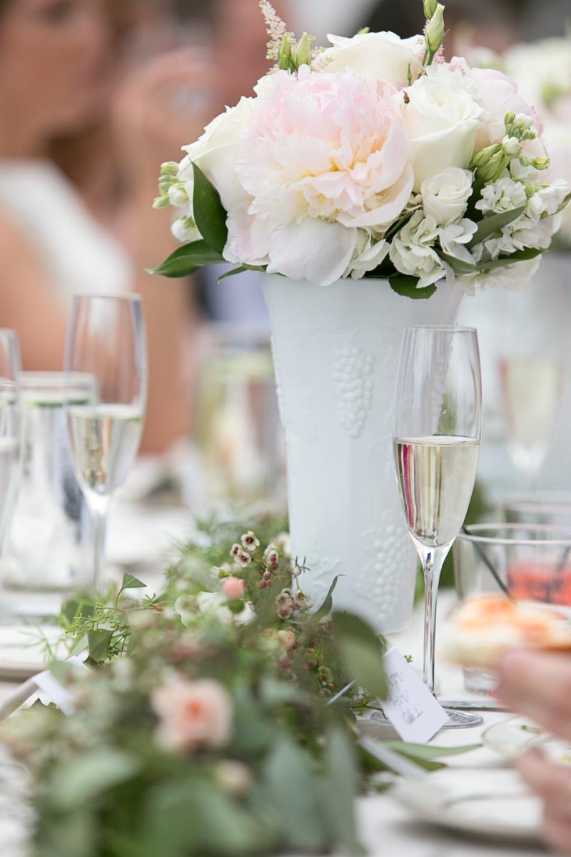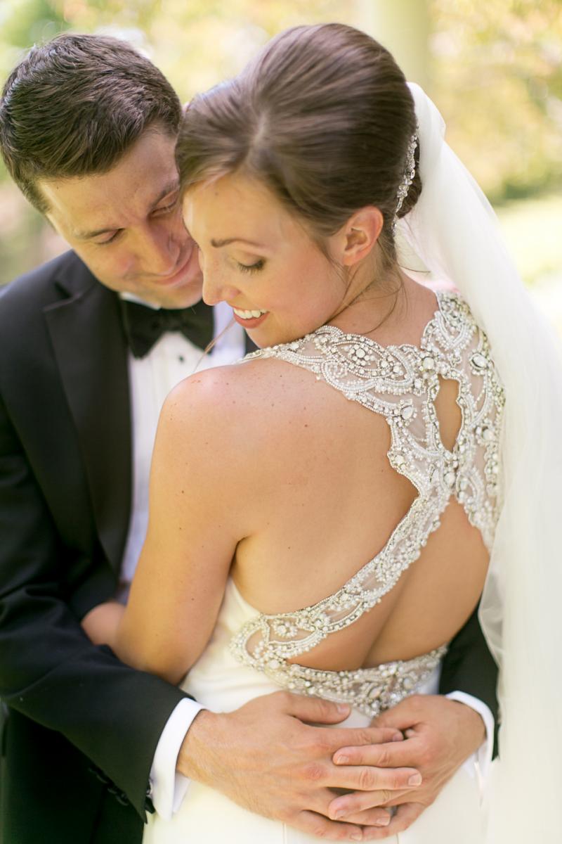 When Alysha Witwicki and Brenton Gospodarek began dating, they spent long nights studying for math tests, went on movie date nights and worked out at UW-Milwaukee’s Klotsche Center. Ten years later, they hosted the wedding of their dreams. Combining their desire for an intimate venue with their appreciation for historic architecture, Alysha and Brenton immediately knew Villa Terrace was the place for them, and their wedding theme centered on the nearly 100-year-old mansion. On the big day, guests were welcomed by a monogrammed watercolor crest painted by Brenton, a graphic designer and photographer. The ceremony was held in the lush garden below Villa Terrace; dinner on the terrace gave guests a gorgeous view of same perfectly manicured gardens and picturesque Lake Michigan. Luxurious bouquets and centerpieces in blush and ivory tones were arranged in the bride’s family’s milk glass collection, playing on the vintage elegance vibe. Following their first kiss as husband and wife at the ceremony, Brenton and Alysha walked back down the aisle to “Love Is All Around,” the theme song from the Mary Tyler Moore Show, and got into a vintage Excalibur, driving to take photos around the Lake Park neighborhood and bask in the excitement of the day. As they maneuvered through the streets of Milwaukee, passersby honked and waved—love really was all around.