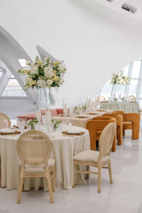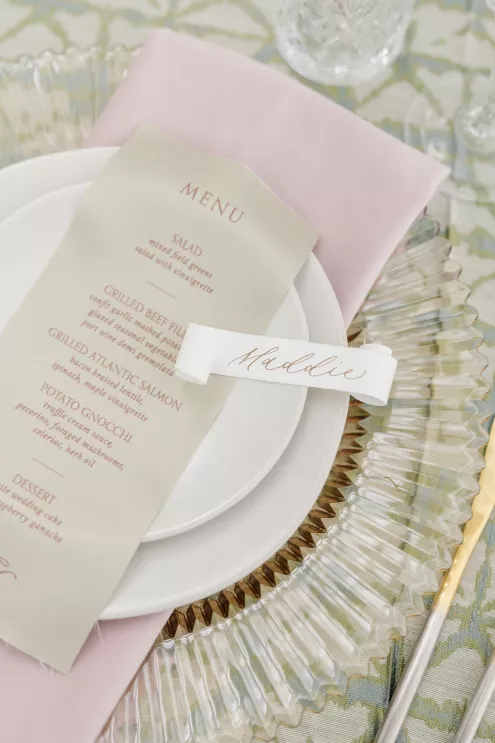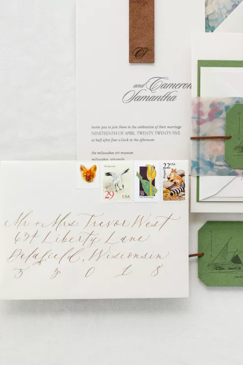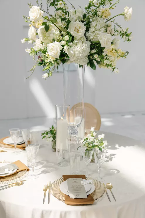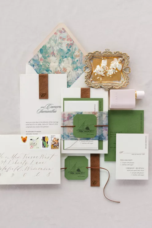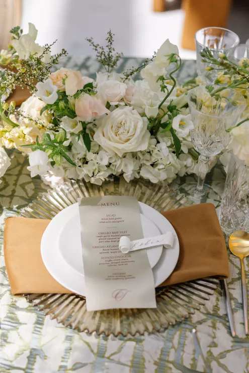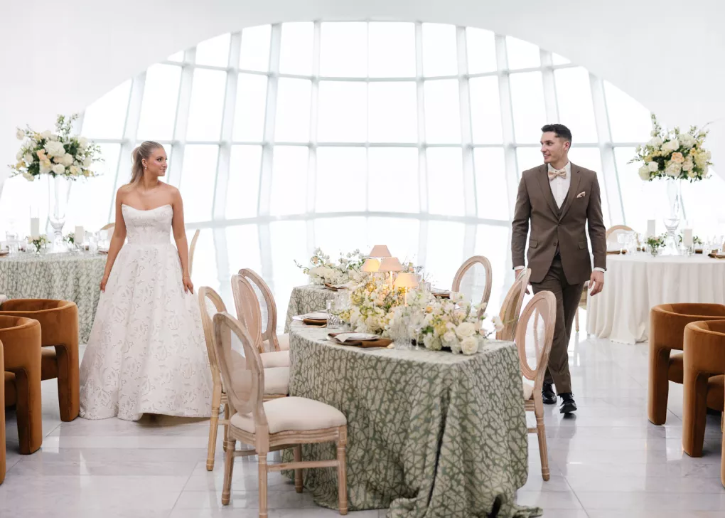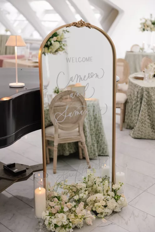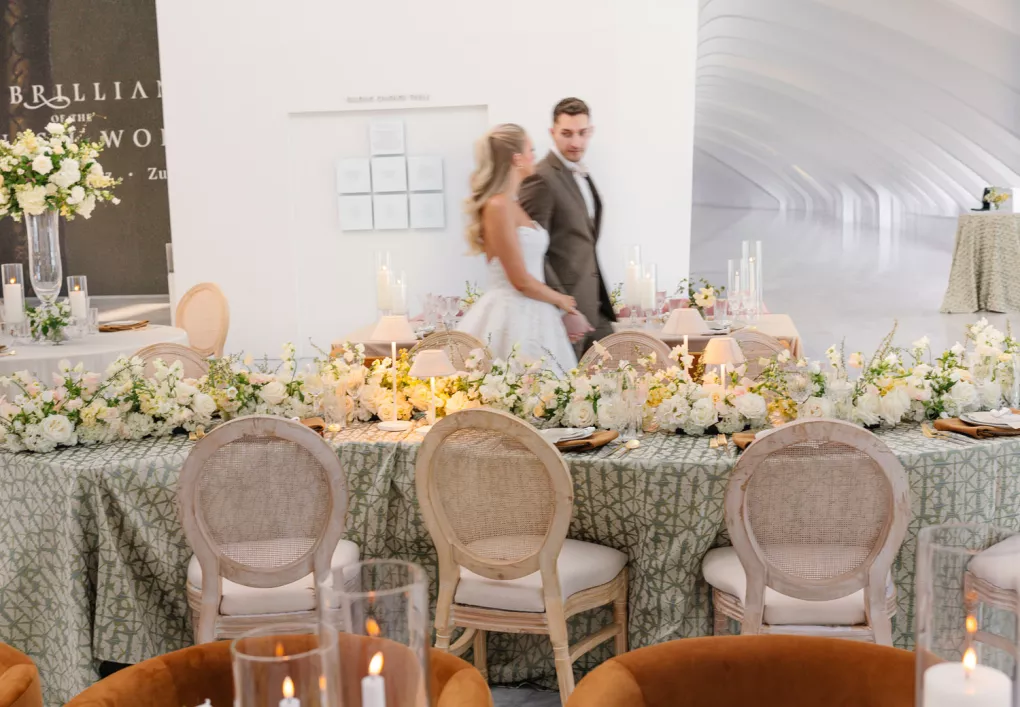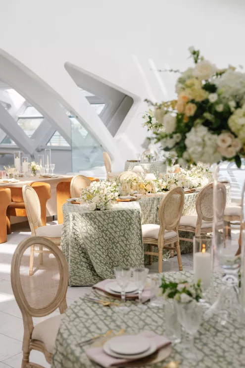 Every detail spoke to balance and intention. Silk menus paired with engraved leather elements brought a tactile sensibility, while soft candlelight lent a golden finish that tied the design together. The result was a vision of modern elegance — alive with artistry, emotion and light — transforming one of Milwaukee’s most iconic spaces into a living work of springtime design.