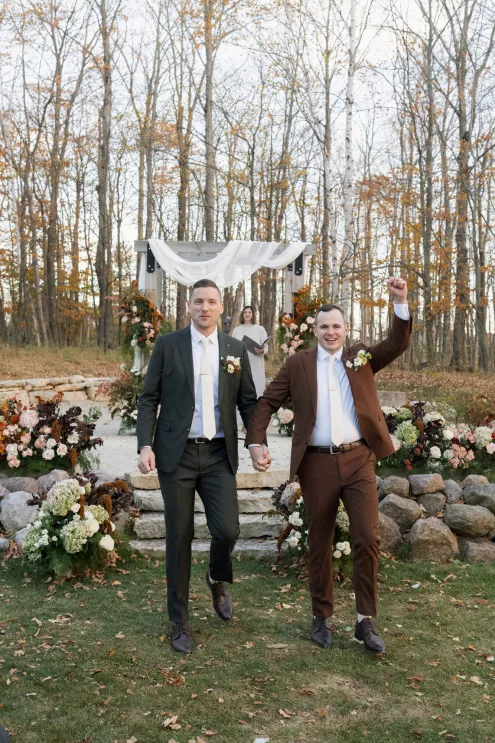 Autumn leaves, colorful trees and cherished friends and family made Evan Smith and Andrew Grazier’s wedding a day to remember.