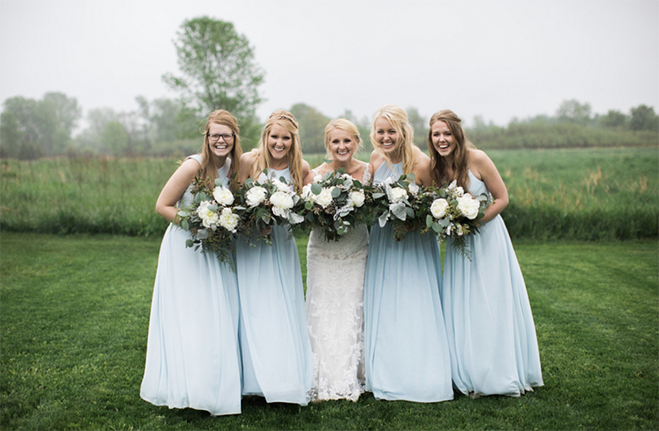 The same things that brought Cassandra Pedigo and Riley Schoonover together keep them together: A love of travel and exploration. Their sense of adventure came in handy on their wedding day, a celebration at the bride’s family spread, where she grew up riding a four-wheeler, hiking and playing in the creek. In the nine months prior to the wedding, Riley and Cassandra’s father made the property, called Meadow Brook, into what the family now jokingly calls a “state park,” complete with a stone staircase, lush green lawn and a boardwalk. Riley, a graphic designer, did extra duty creating all the invites, table activities and menu cards. Cassandra offered her talents as well, finding church pews for guests to sit in for the ceremony, designing chalkboards and creating table numbers that showcased where the couple has traveled. While Mother Nature made her presence felt with a little rain, by no means did it ruin the day. Under the shelter of a tent, a string quartet created a romantic upbeat vibe as the drops fell. As the couple prepared to make their grand exit, they pulled off the sparkler departure they’d planned. Surrounded by what looked like miniature fireworks dancing in the air, the couple jumped into their getaway car, an old Model A restored by the bride’s grandfather, and drove off into the horizon.
