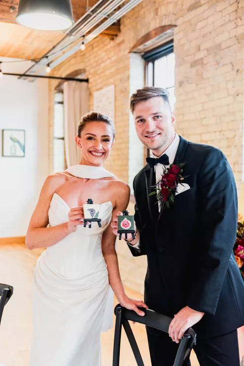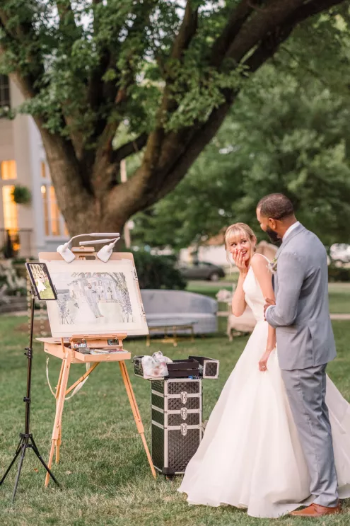 Couples who work with Cayla tend to value artistry, authenticity, and sentiment. Whether you’re envisioning a romantic heirloom painting to hang in your home or interactive guest portraits that spark conversation and delight, Cayla brings creativity, professionalism, and heart to every event she’s part of.
