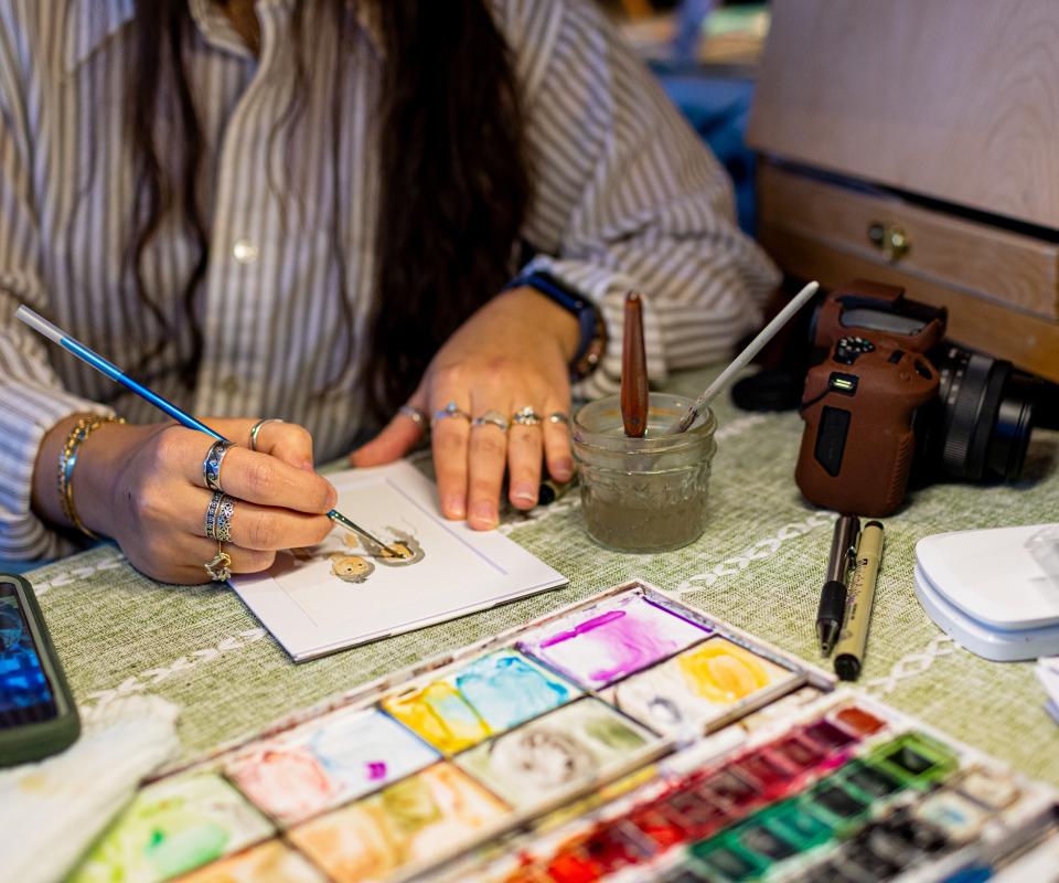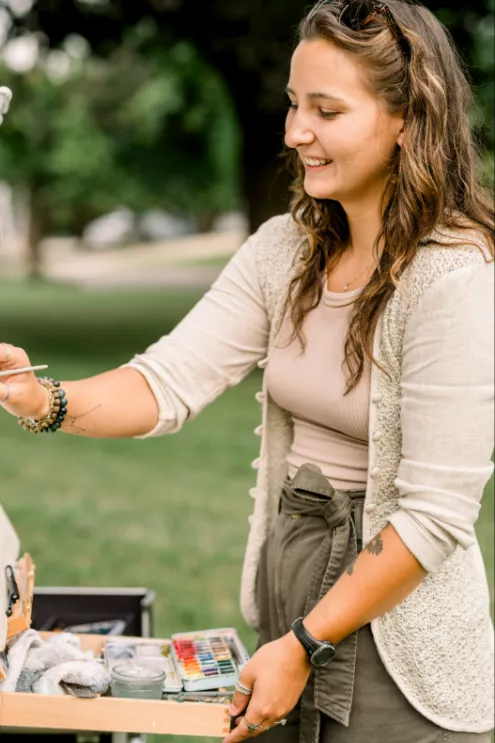 Known for her warm, inviting personality and expressive style, Cayla blends seamlessly into your event, painting as the day unfolds and creating meaningful keepsakes that tell your love story. Each brushstroke reflects the joy, color, and emotion of your celebration, resulting in art that feels both timeless and deeply personal.