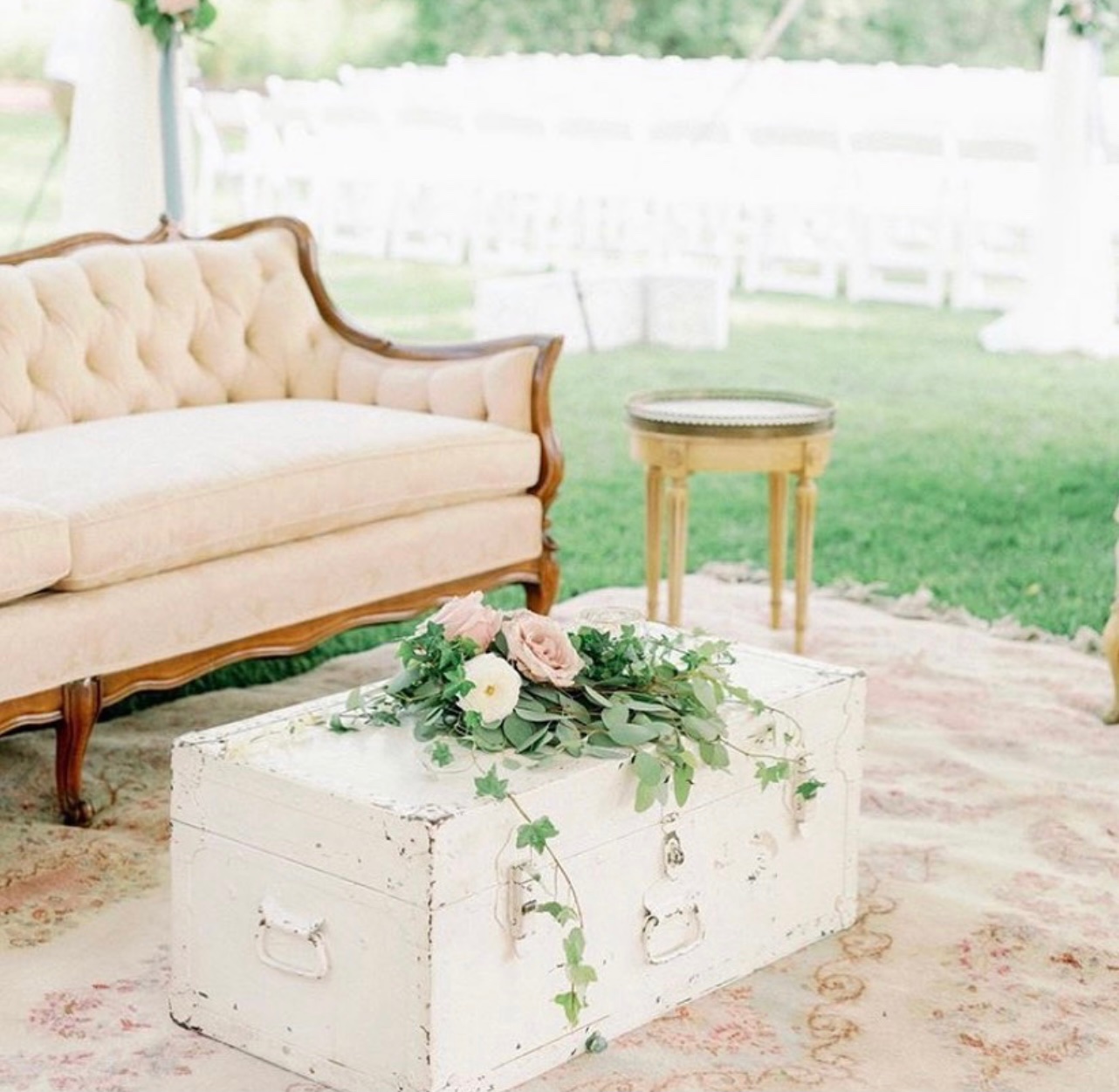 Finding the perfect rentals for your big day can also be a great way to instill some safety features into your ceremony and reception. Relics Rentals owner and founder Jan Oelke find that "Sofas, settees, and lounge chairs not only make for gorgeous ceremony seating but also happen to be the best option for not-so-noticeable socially-distanced seating!"