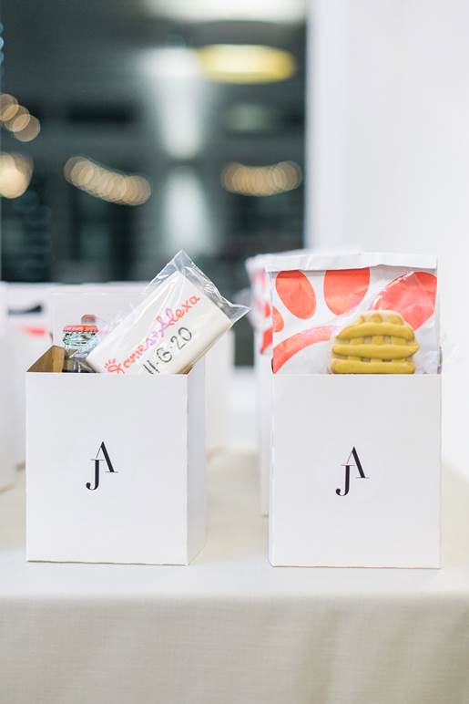 As we all know matching our excitement for normalcy along with safety in 2021 will be key! Bringing creativity and humor to the safety of guests is going to be an ongoing trend as we welcome the new season. Event planner and owner of Midwestern Bride, Ashley Kuehnel, states "Family-style dining should not be on the docket as much as we all loved it. Self-serve candy buffets or dessert tables left unattended isn't going to be your best option. Instead, why not opt to have a staff member pass out individually wrapped cupcakes or candy bags as a late-night treat? Put together a snack caddy of late-night food and a custom cookie." This cute favor is sure to leave a delicious impression on your guests!