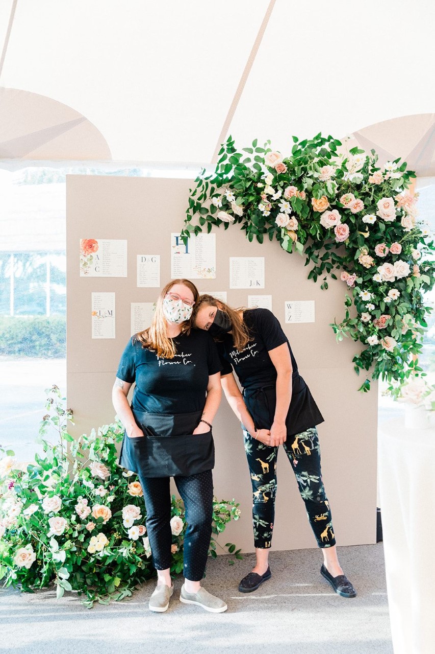 Though planning through a pandemic was probably not what you might have envisioned, take a look on the bright side. Sally Vander Wyst of Milwaukee Flower Co. is quick to remind us that rearranging some plans might actually open a few doors. "Take some time to talk through a plan A, B, and C with your partner, planner, and family months before your wedding to save you the stress of last-minute planning heartaches. Plan A would be your original wedding plan, Plan B would be 50% of your original guest list and Plan C would be 25% of your original guest list. Once you have made those guest lists, play around with your budget. Look for the silver lining - maybe you have more flowers, a five-course meal, or something special you couldn't afford with a larger guest count."
