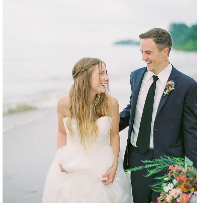 Nothing fussy here: Pair beachy waves and natural makeup with an ethereal, easy-to-move-in dress, so you can take a stroll on the sand or break it down on the dance floor, depending on your whim. “Every bride deserves to be comfortable on her wedding day,” says Kline-Weichelt.