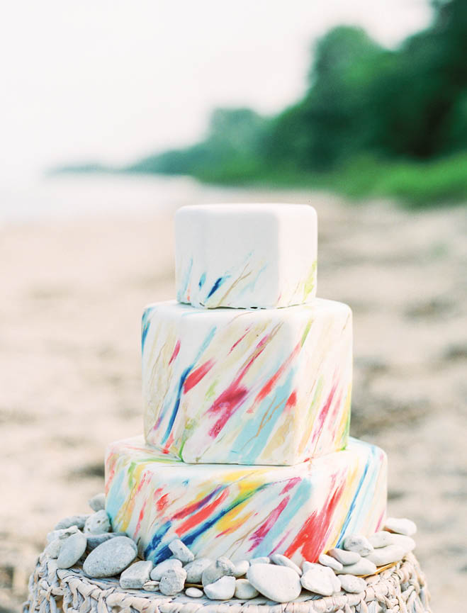 Green Bay’s Monzu Bakery hand-painted colorful wisps on this hexagonal cake, echoing gentle waves. Water-smoothed rocks add a purely natural element, grounding the coastal theme. Save us a slice, will you?