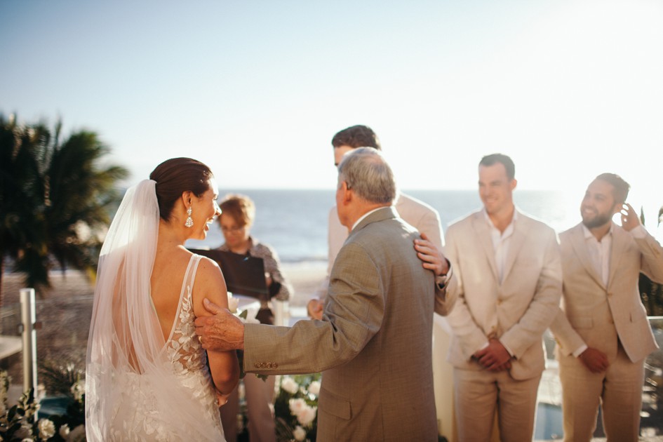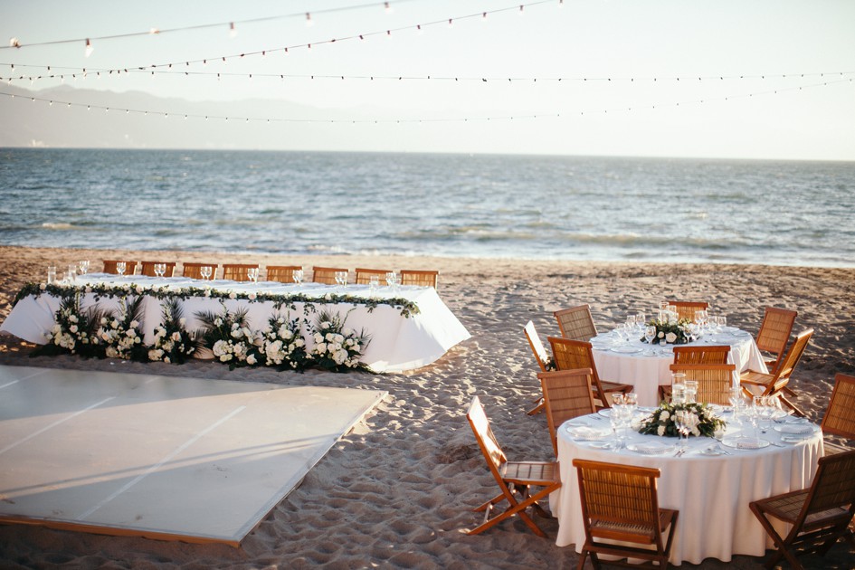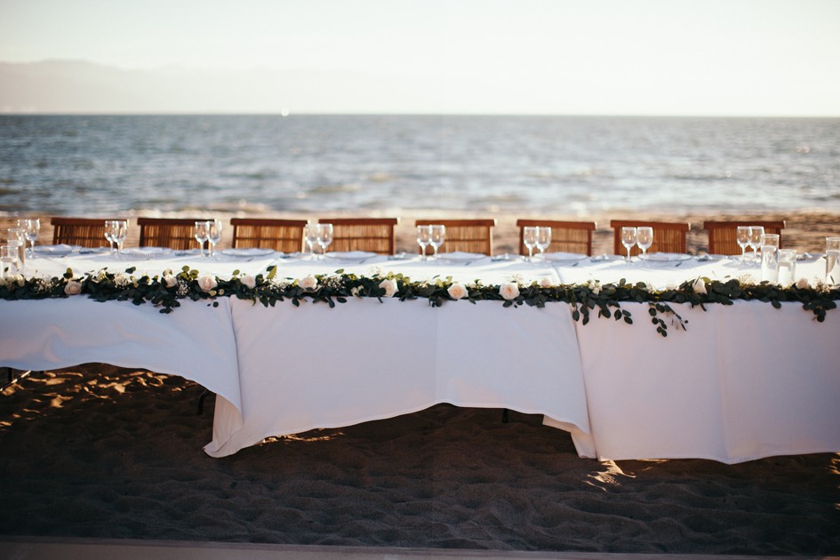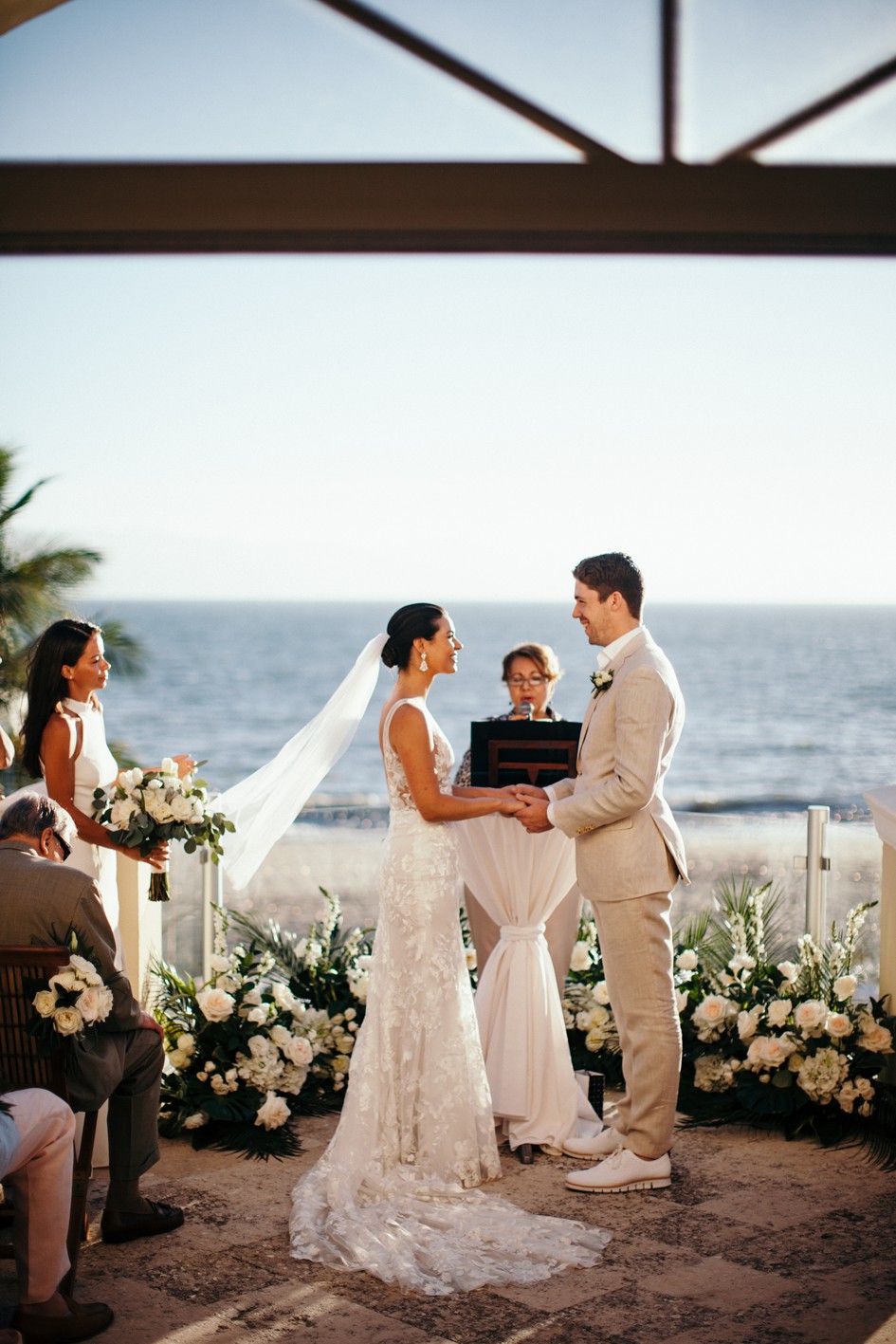 Lauren and MacCabe celebrated their wedding beachfront at the luxurious Casa Velas resort in Puerto Vallarta, Mexico. Casa Velas promised Lauren and MacCabe a wedding to the nines in the truest sense. Simple place settings plus ivory florals lent the day an elegance only surpassed by the serene sands on the Puerto Vallarta beach. Wicker chairs tied in the beach theme and brought California chill to the beautiful reception. Lauren and MacCabe said "I do" with the waves of the Pacific Ocean lapping in the background, and their reception ended with a stunning sunset over the west horizon.