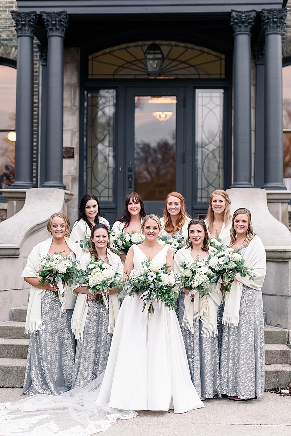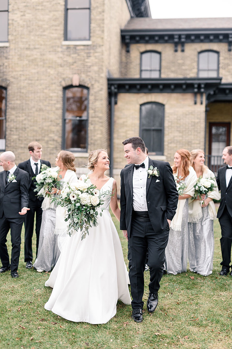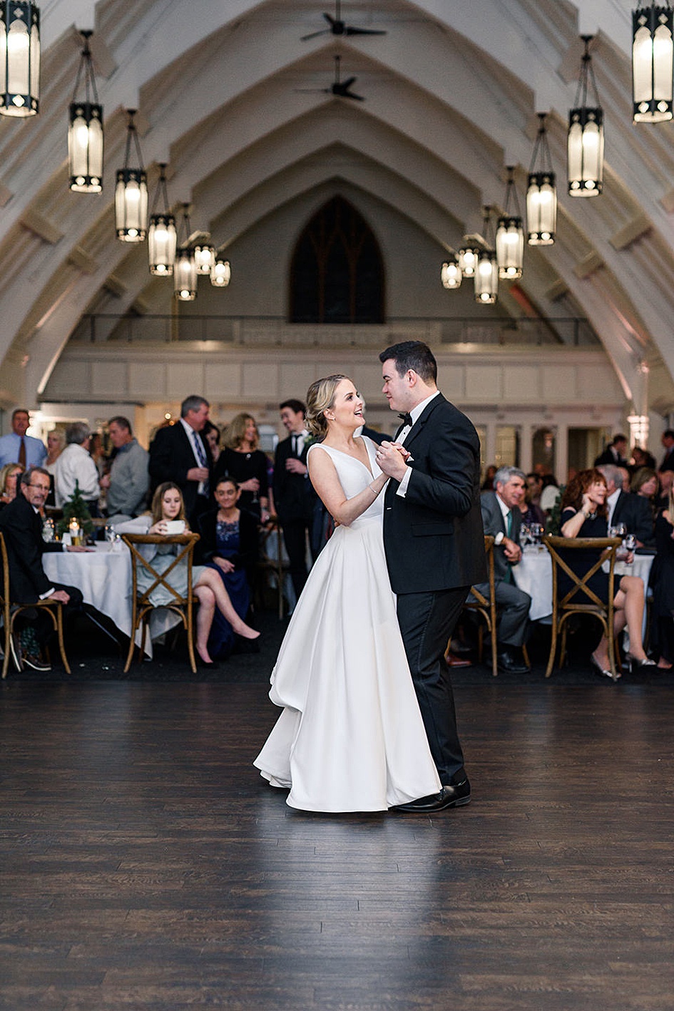 Jennifer McIlquham’s dog, Helix, knew her “mom” and Matthew Suarez were destined to be together. Jennifer and Matthew were each out walking their dogs when Helix broke free and ran to Matthew’s dog, Reggie. “They started playing, and the rest is history!” Jennifer says. Fast-forward two years at the same park: Matthew got down on one knee to propose. The couple’s January wedding day was warmed by family taking part in their Catholic ceremony. Godparents brought gifts down the aisle and walked in the procession to make the day even more special. Murray Mansion became an elegant winter wonderland, with evergreen trees embellished according to the white, silver and green palette. Small pine tree centerpieces decorated the guest tables while white houses with lights and garlands adorned the head table. One of the couple’s favorite moments — second only to their first sight of each other in the church — was when the two went up to the balcony during the reception. “We took a minute to ourselves to take everything in from the day and enjoy looking out at everyone who was there to support us and our future,” Jennifer says. Guests received chocolates Jennifer had hand-wrapped and placed in boxes with wooden name tags. The big surprise: The newlyweds held a gender reveal after the ceremony to share the news of their baby-to-be: It’s a girl!