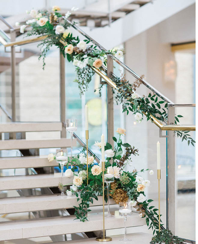 How divine to say your “I do’s” on the grand staircase of the Overture Center for the Arts. A lavish floral installation by Alluring Blooms elevates the scene to dream-worthy status.