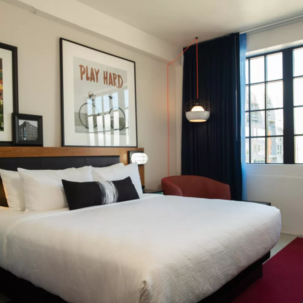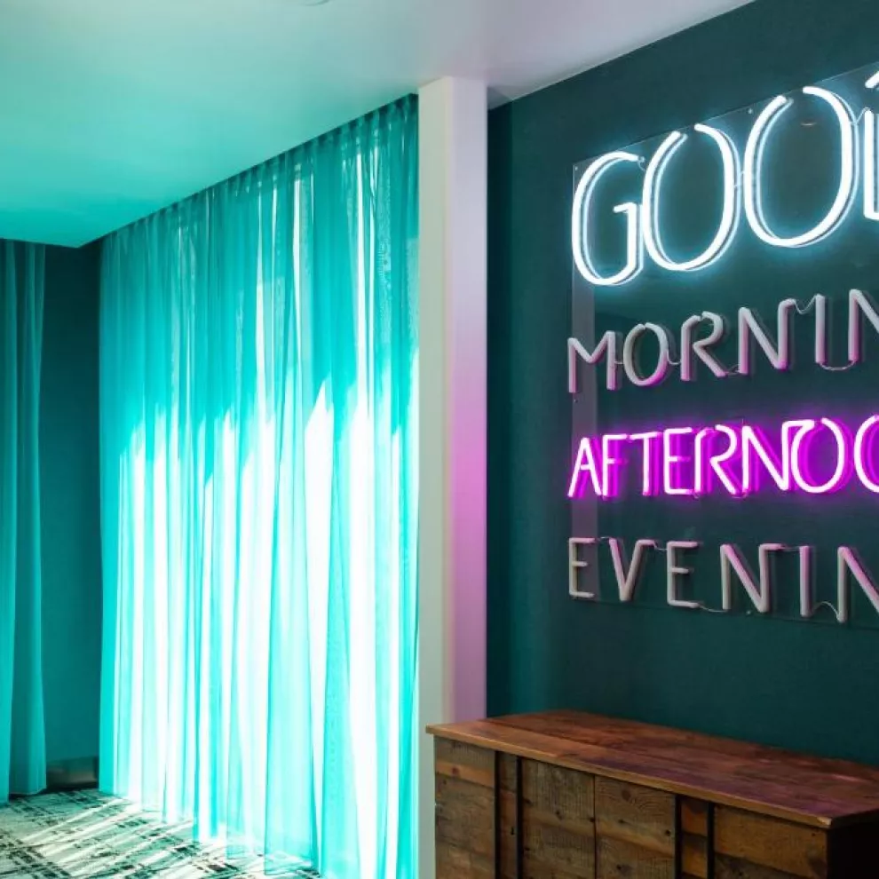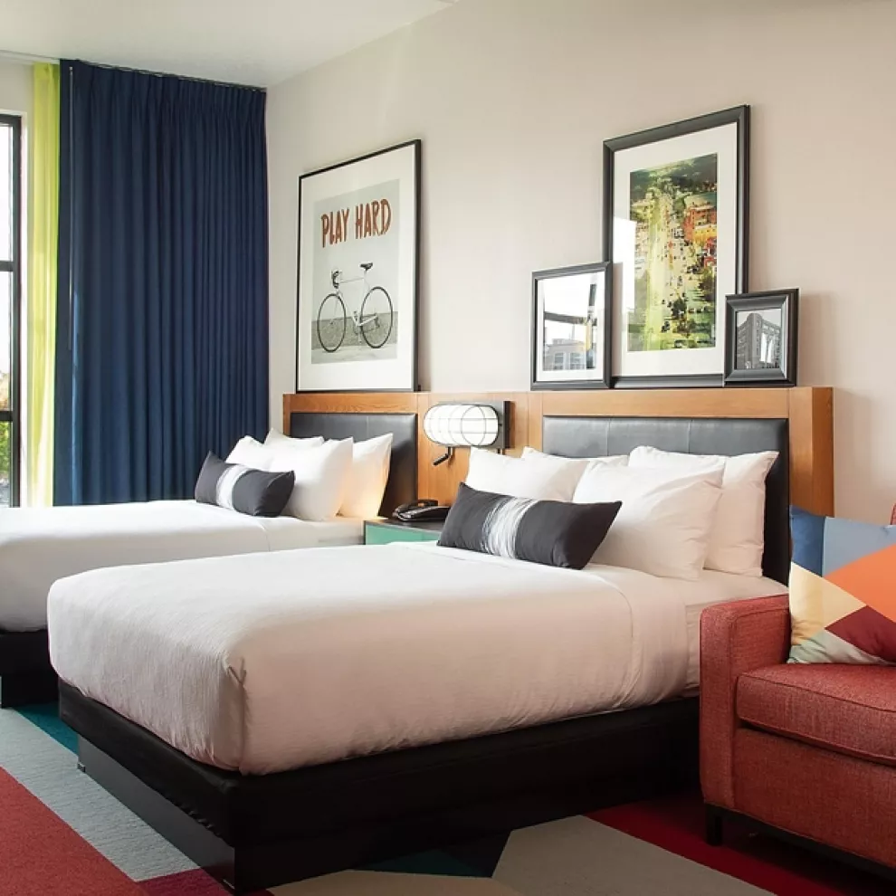 Situated just a short stroll from the downtown capitol square, you'll find Hotel Indigo Madison Downtown. This brand-new hotel is within the landmark Mautz Paint Company building, where modern meets historic with creatively crafted murals throughout the space that showcase the authentic style of the original architecture. The well-appointed guest rooms and suites feature nostalgic touches with modern amenities to help you feel refreshed and inspired. In our colorful restaurant, Palette Bar & Grill, we're all about making life colorful and American cuisine a celebration. Come and let us help you create an authentic Madison experience during your next stay.