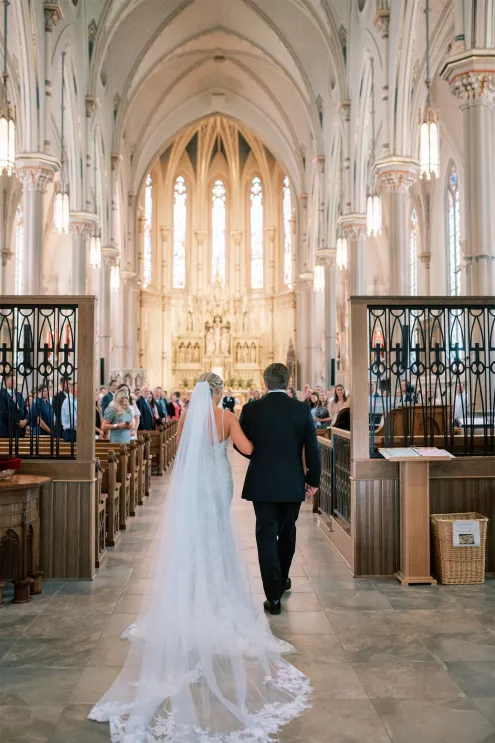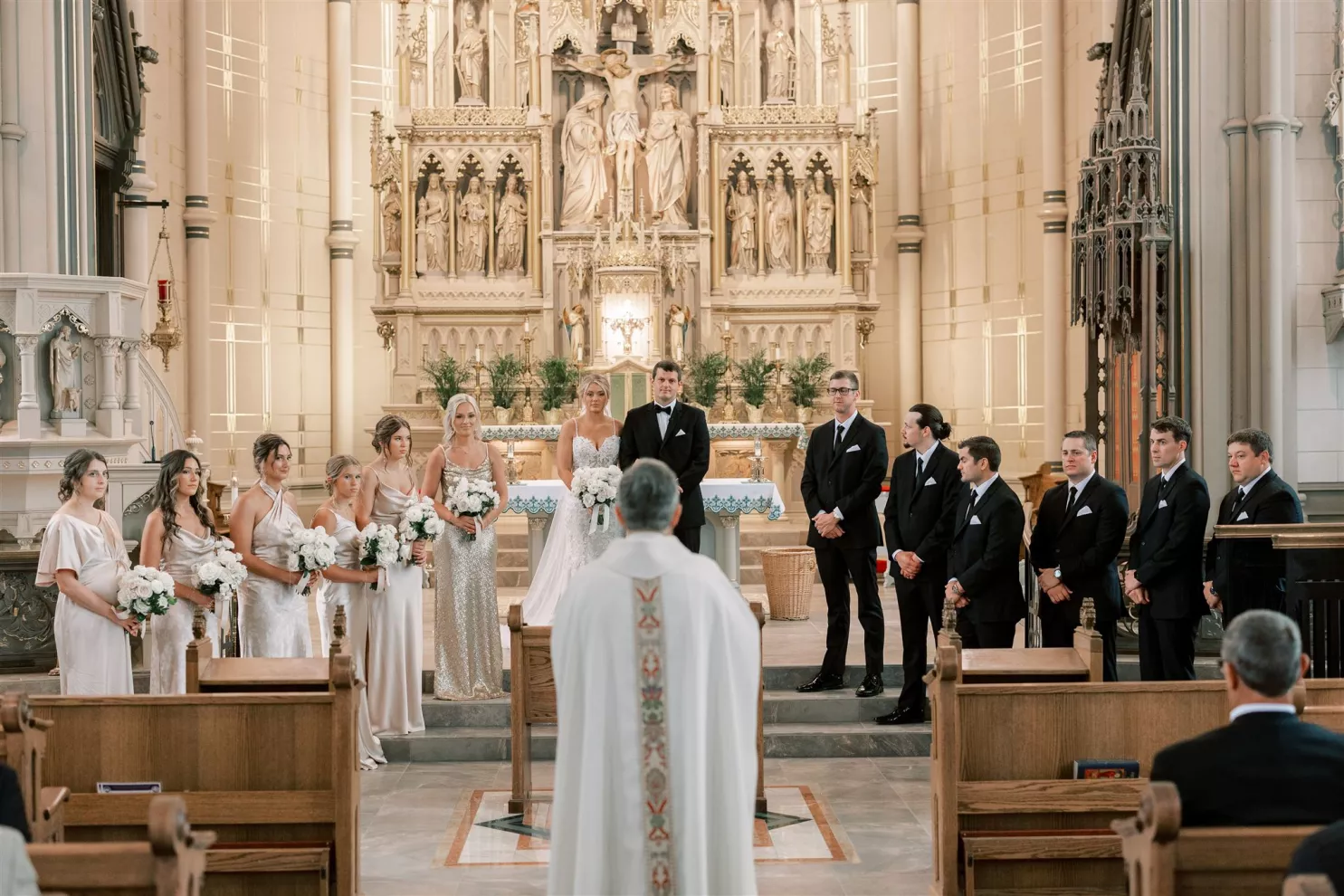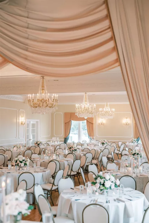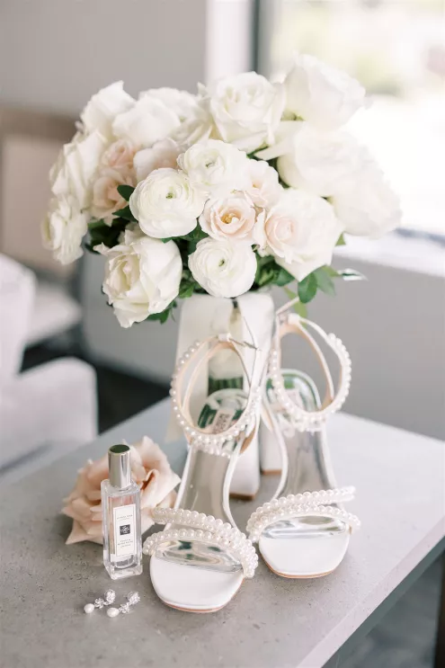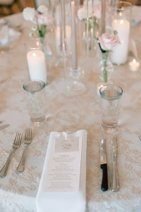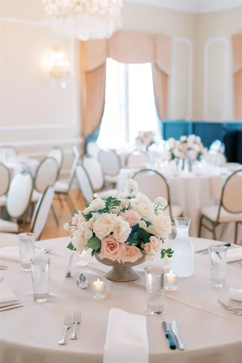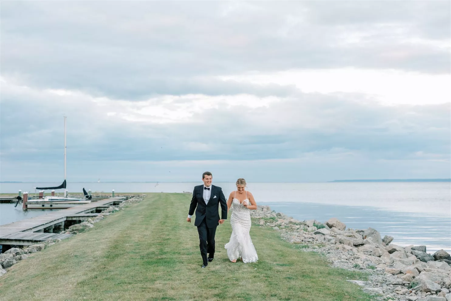 Brianna and Elliot's love story began in the heart of Wisconsin, at the hospital where both were working. The two exchanged phone numbers on Valentine's Day, and in 2022, the pair got engaged at the top of Rib Mountain. Both the bride and groom grew up on the lakes of Wisconsin. They knew that they wanted their wedding to feel like those nostalgic lakeside afternoons — the soft hush after a cannonball, the low glow of lanterns and the smell of a backyard cookout — elevated for the day. At The Waters, Lake Winnebago became more than a view; it became an intentional memory. And so after the newlyweds exchanged vows, surrounded by happy tears and love during the couple's church ceremony, held at Saint Mary's Church, they headed back to the shoreline. Guests mingled during the outdoor cocktail hour, enjoying easy conversation, a warm breeze and gelato from The Knotted Cone. Throughout the space, both inside and out, flowerscapes echoed the timeless lakeside elegance of the day, with blush roses, ranunculus and spray roses dotted throughout the venue. Soft pops of greenery contrasted thoughtfully with the creamy florals, creating a classic tablescape. The reception inside The Waters' romantic ballroom glittered with chandeliers, casting a sparkling glow throughout the space as guests found their seats, and laughter drifted over the low-garden-inspired centerpieces. After the reception, everyone headed back out to the lake to celebrate the newlyweds' next chapter for the rest of the evening, dancing together as the sun set and the lake's waters began glittering with moonlight.