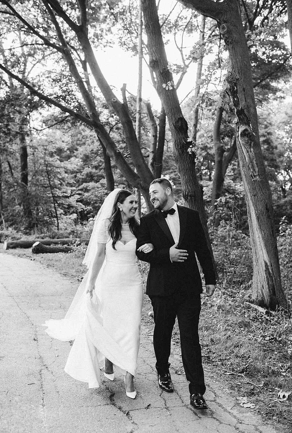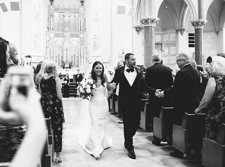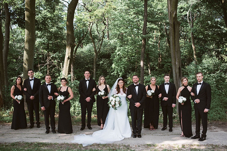 Catherine Snow took the phrase “love thy neighbor” seriously when she met her downstairs neighbor Ben Miller their sophomore year at the University of Dayton. Their neighborly friendship turned romantic when Ben asked Catherine to be his date at a family wedding in the summer before their junior year. Eight and a half years later, Ben pulled off the charming proposal Catherine had always dreamed of, when she came home after work to find their dog, Riri, with a ring box hanging from her collar. After his proposal, Ben surprised her again, with close friends waiting to celebrate at a dinner at Pizza Man off Downer, their go-to date spot at the time. The couple’s wedding vision of sexy chic came together perfectly with a black and white design theme. Catherine carried white peonies with pops of green, tall black centerpieces with ferns adorned some tables, while others had mini bouquets matching the bride’s, with candles for a romantic touch; the cake was kept simple, with a fern design to match the centerpieces. The cigar bar outside served dark liquor and included monogrammed matchbooks, an homage to Catherine’s childhood in Chicago, when she would accompany her dad to cigar shops. “I remember loving those boxes and the smells. It was something I always wanted at our wedding,” she said. As the sun went down on their perfect July day, everyone gathered on the dance floor to celebrate Catherine and Ben’s everlasting love.