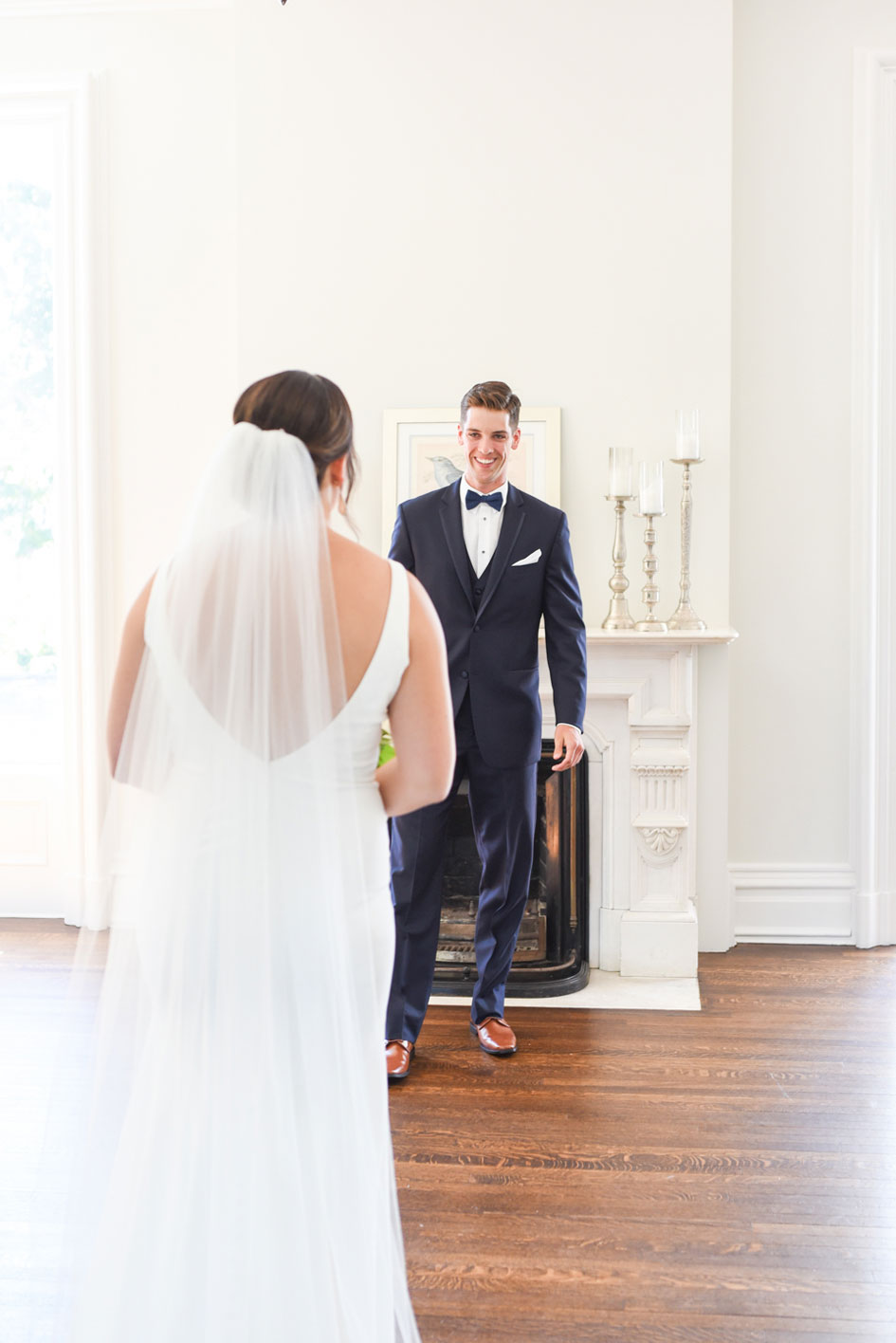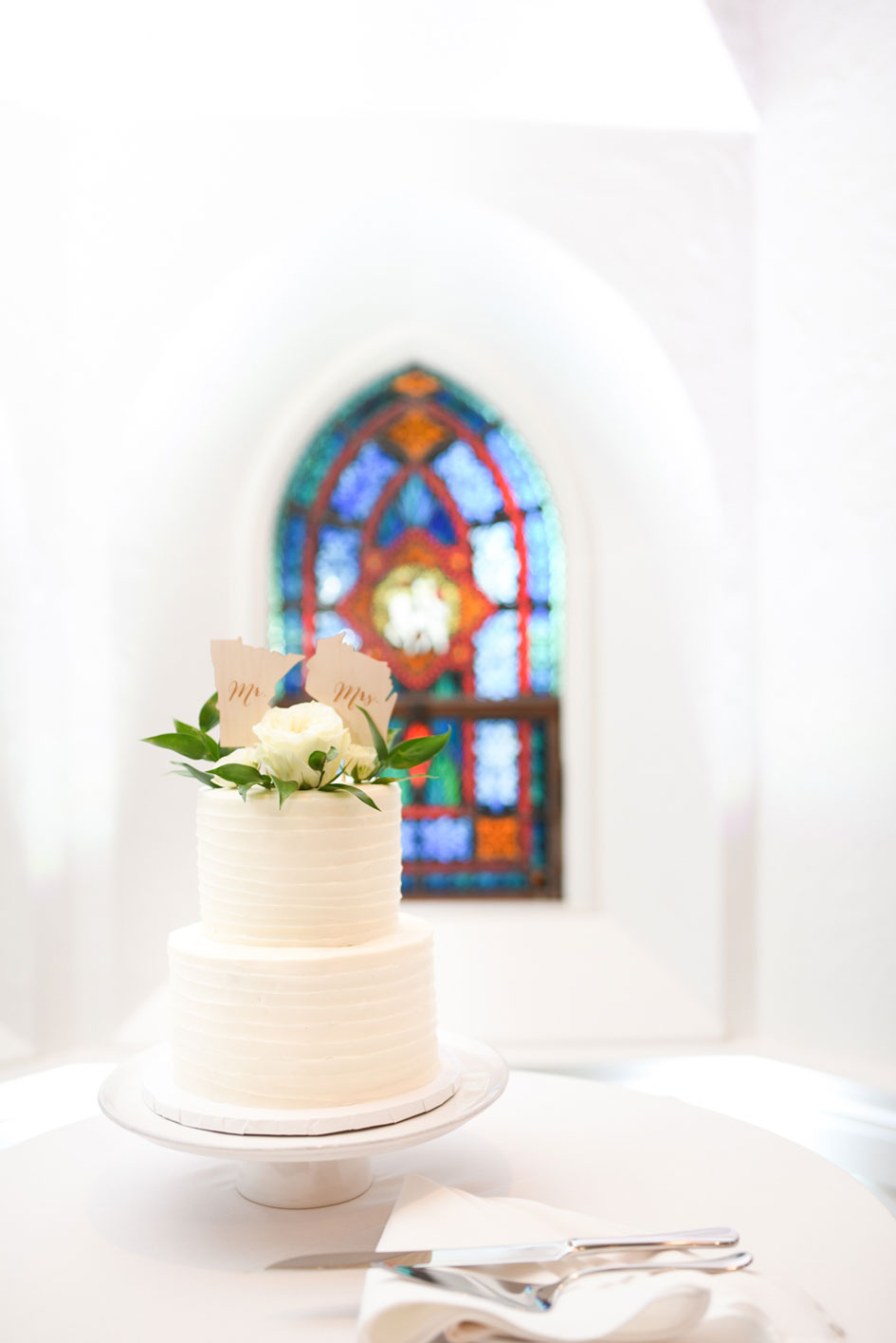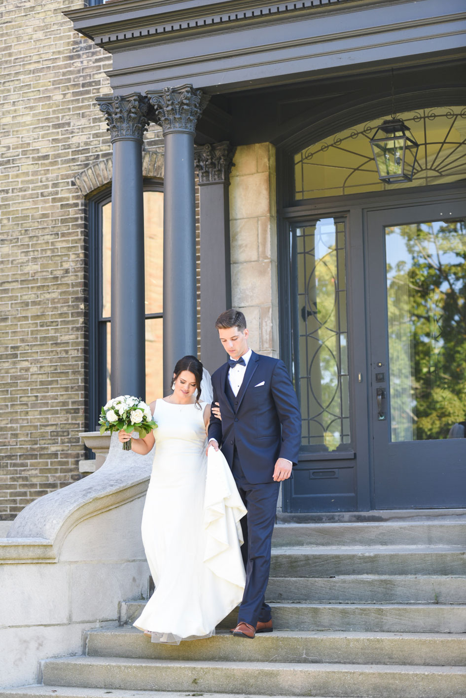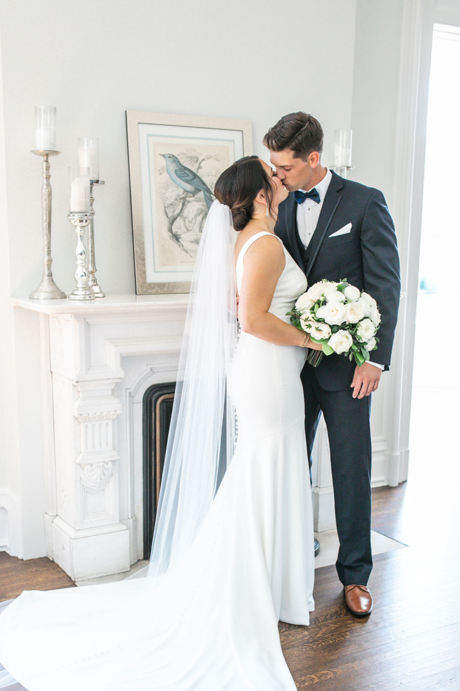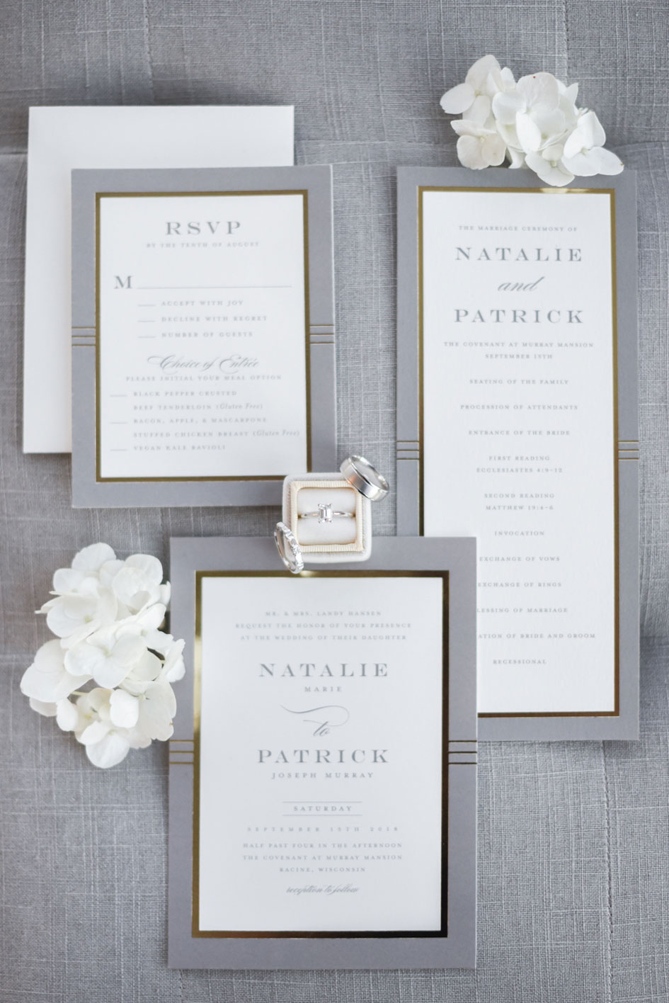 Patrick, a Minnesota native, and Natalie, who hails from Wisconsin, got engaged on a Christmas tree farm. On the morning of their wedding, Patrick gifted Natalie a diamond necklace, held in a hand-carved jewelry box made from the stump of the couple's own Christmas tree. This was the first in a long line of personal touches throughout the couple's wedding day. Local florist Jane Kelly Floral helped design a simple yet fresh aesthetic that complemented the stately grandeur of The Covenent at Murray Mansion. Patrick's classic tux and bow tie, along with Natalie's simple white gown, made for an old Hollywood look. Even the cake had a personal touch - Minnesota and Wisconsin laser cutouts perched on top, signaling the union and love between the bride and groom.