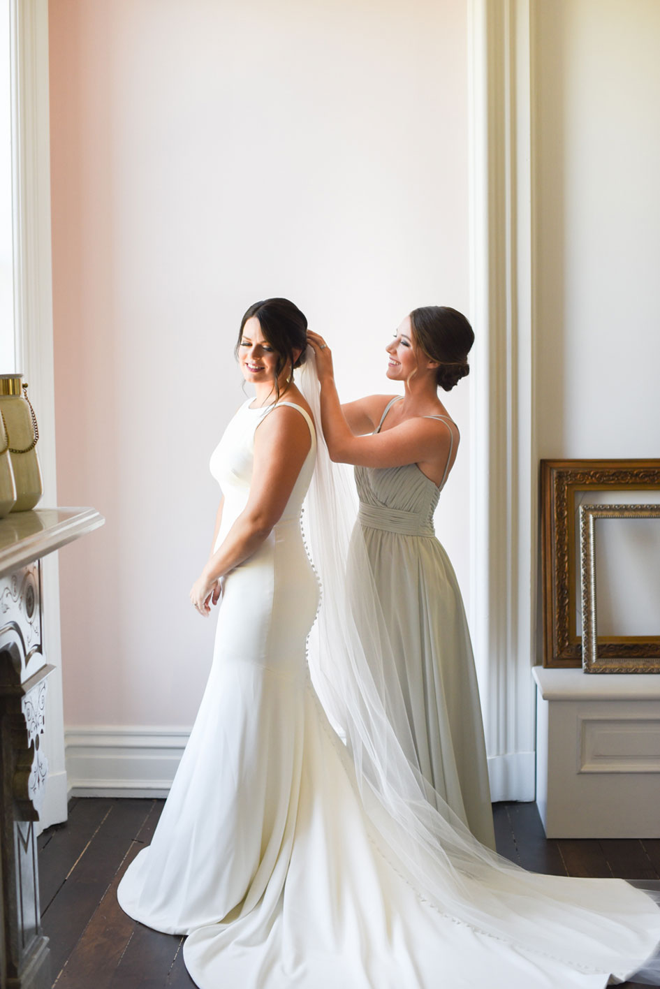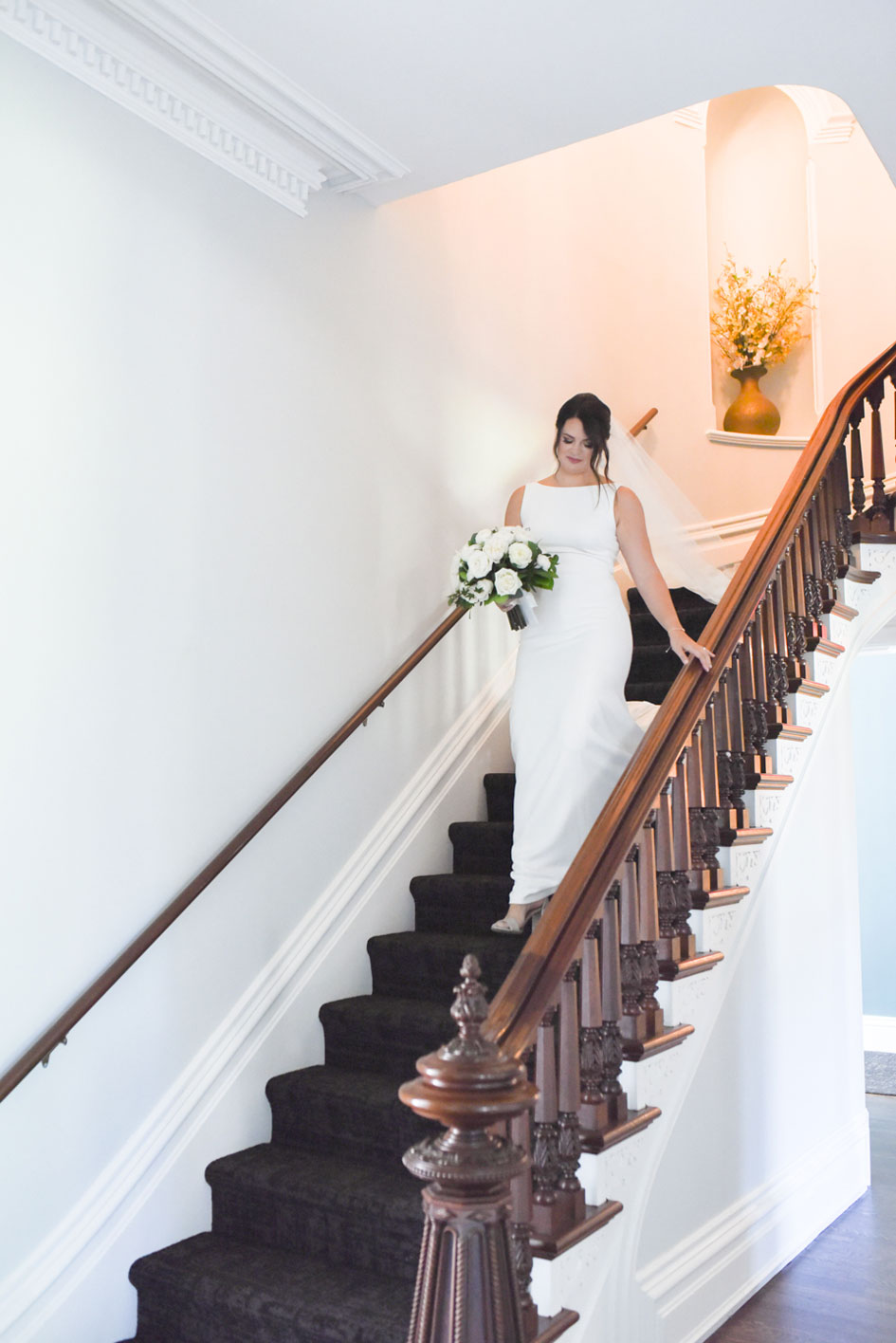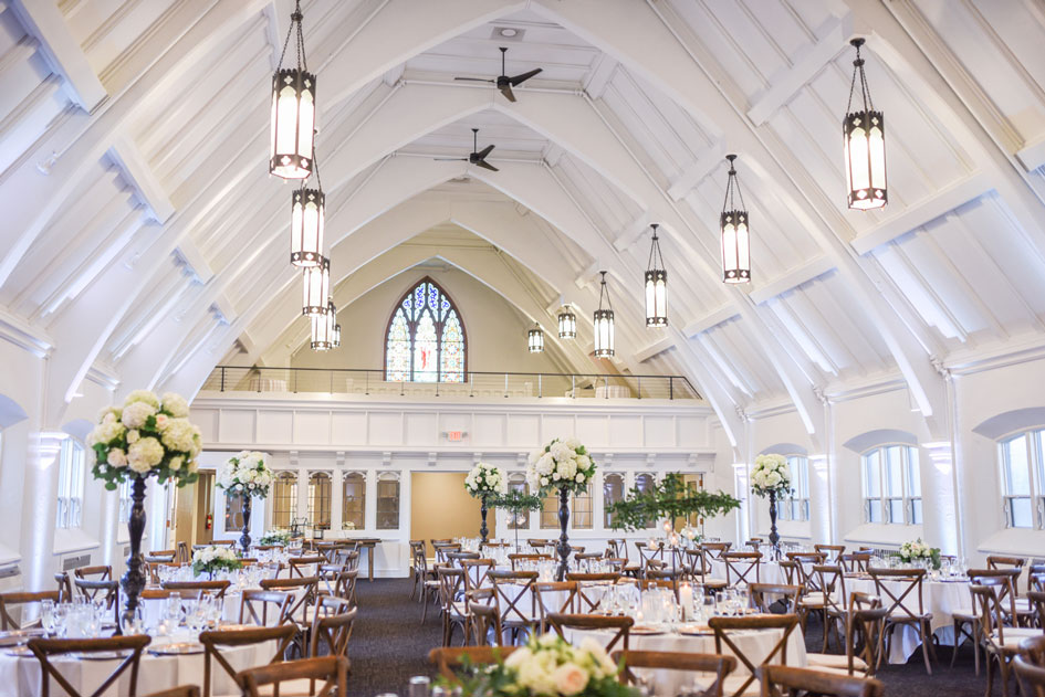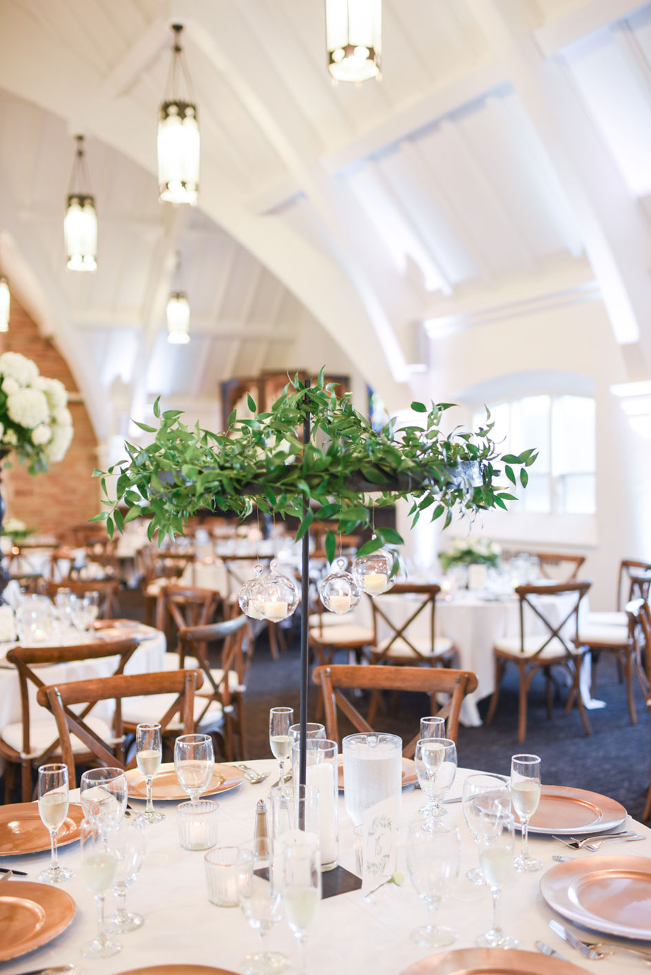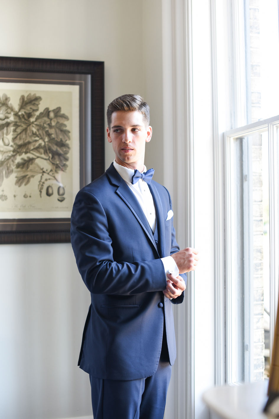 Patrick, a Minnesota native, and Natalie, who hails from Wisconsin, got engaged on a Christmas tree farm. On the morning of their wedding, Patrick gifted Natalie a diamond necklace, held in a hand-carved jewelry box made from the stump of the couple's own Christmas tree. This was the first in a long line of personal touches throughout the couple's wedding day. Local florist Jane Kelly Floral helped design a simple yet fresh aesthetic that complemented the stately grandeur of The Covenent at Murray Mansion. Patrick's classic tux and bow tie, along with Natalie's simple white gown, made for an old Hollywood look. Even the cake had a personal touch - Minnesota and Wisconsin laser cutouts perched on top, signaling the union and love between the bride and groom.