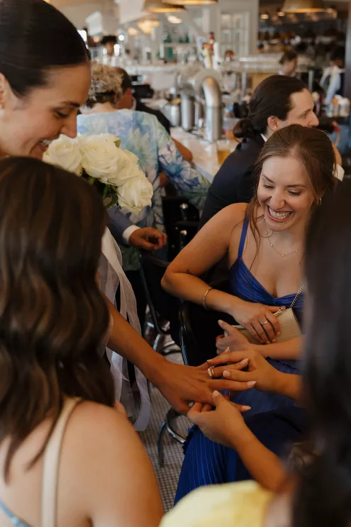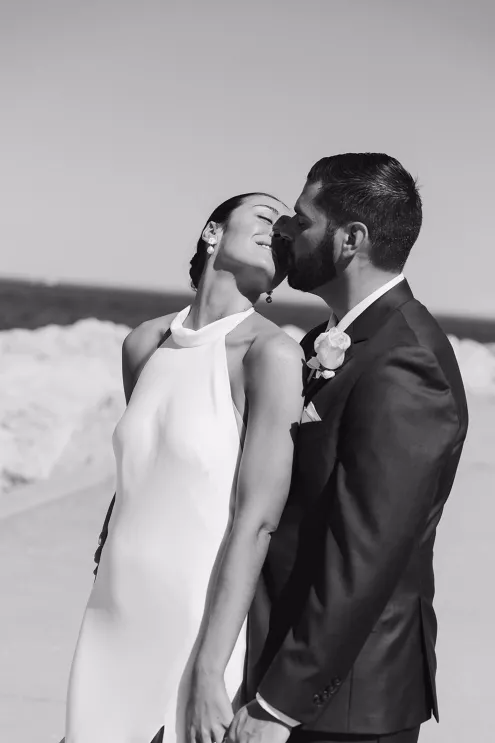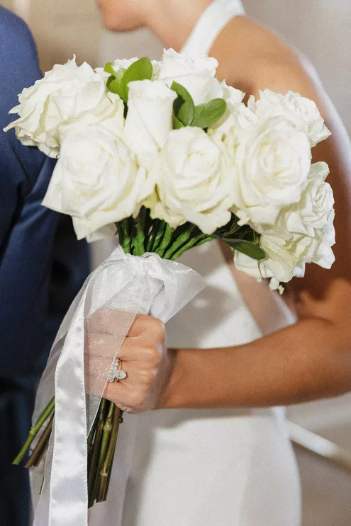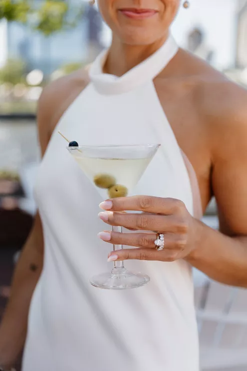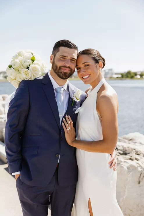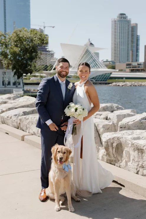 Kate and Eric met through a mutual friend at the beginning of 2020. Despite the times, their love blossomed. The couple adopted their golden retriever, Madison, a year after meeting, and soon after, they bought their first home as well. It was thanks to their new home and pup that the pair began taking walks in the park in their new neighborhood: the place where they would one day get engaged. Eric planned the proposal out flawlessly, having their family friend and photographer, Sarah Sandgren, waiting nearby to capture the special moment. From the start, the couple knew that they didn’t want a traditional wedding, opting instead for an intimate ceremony at the Milwaukee courthouse with their closest family and friends. Kate chose a timeless silk halter dress for the wedding, while Eric opted for a classic suit and tie, and Madison wore a baby blue bow around her neck. After saying "I do," the small party shared a drink at the Harbor House before joining the rest of their guests at Engine Company No. 3. The reception was casual and designed to keep easy conversation flowing throughout the night; food was buffet-style appetizers, the seating was informal and the cocktail napkins were embossed with a portrait of Madison. The wedding festivities didn’t end there, however, as two months later, the couple and their nearest and dearest travelled to Pistoia, Italy, for a romantic Italian countryside wedding. Loved ones celebrated the pair in a weekend-long celebration full of many magical moments.