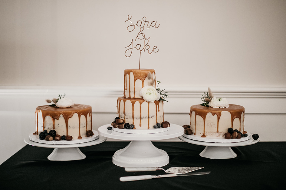 Jake’s favorite moment was “standing at the altar and feeling so incredibly happy as I saw Sara walking down the aisle. That’s the moment that I’ll never forget,” he says. The drinks flowed, with three specialty cocktails dedicated to their three beloved dogs. From an area to snap Polaroid pictures to a cigar station on the rooftop, the night was unforgettable — as it should be.