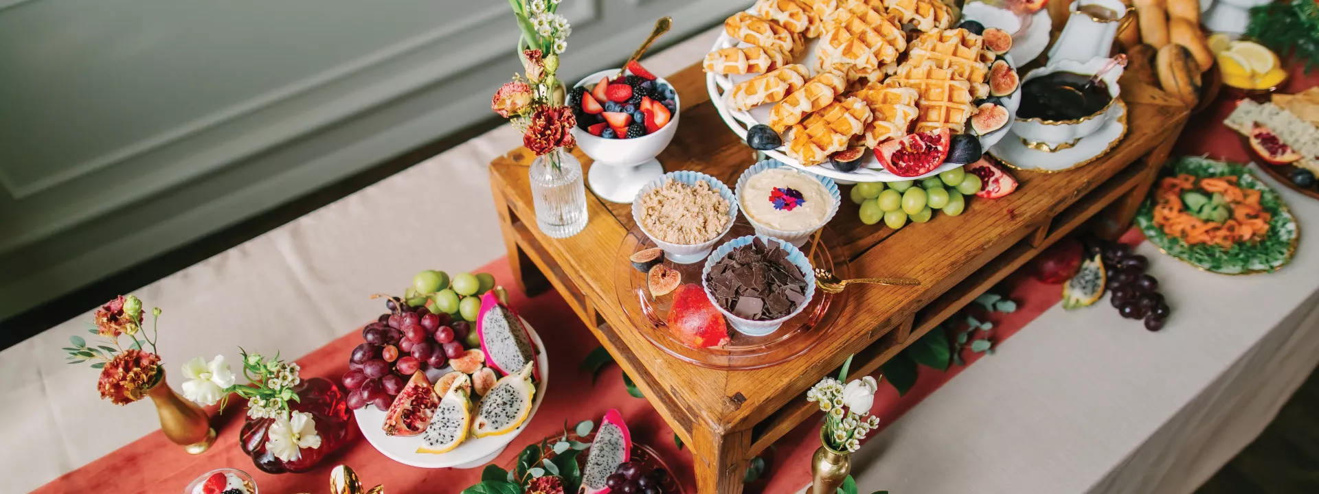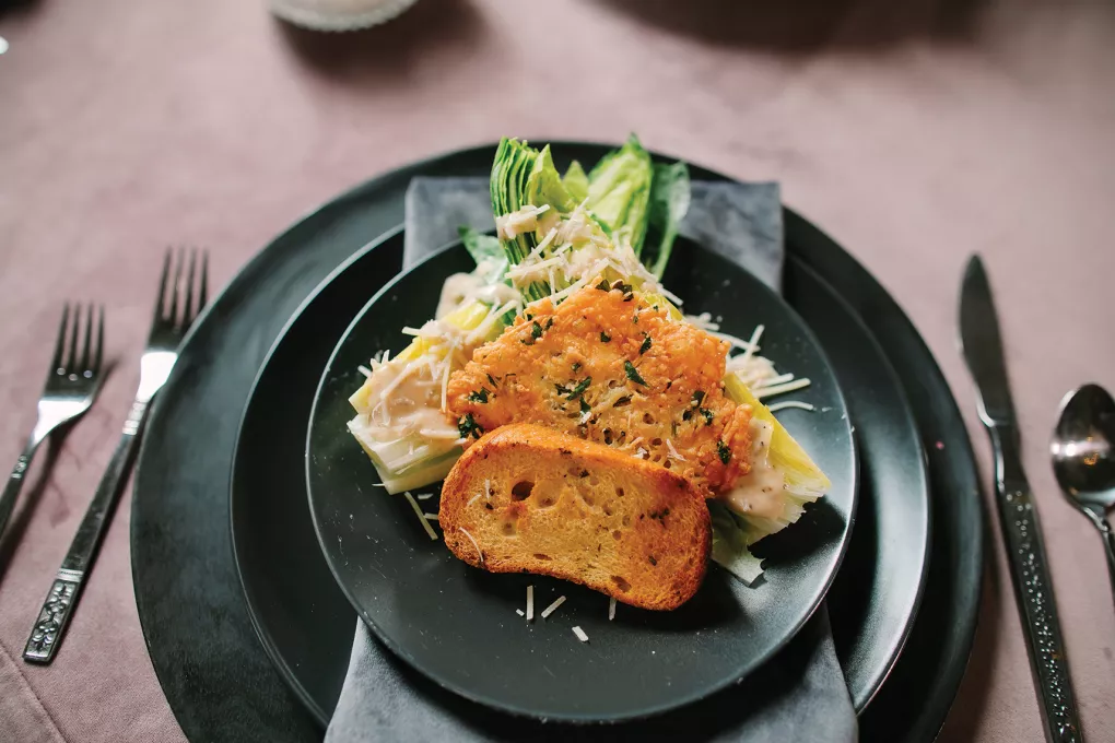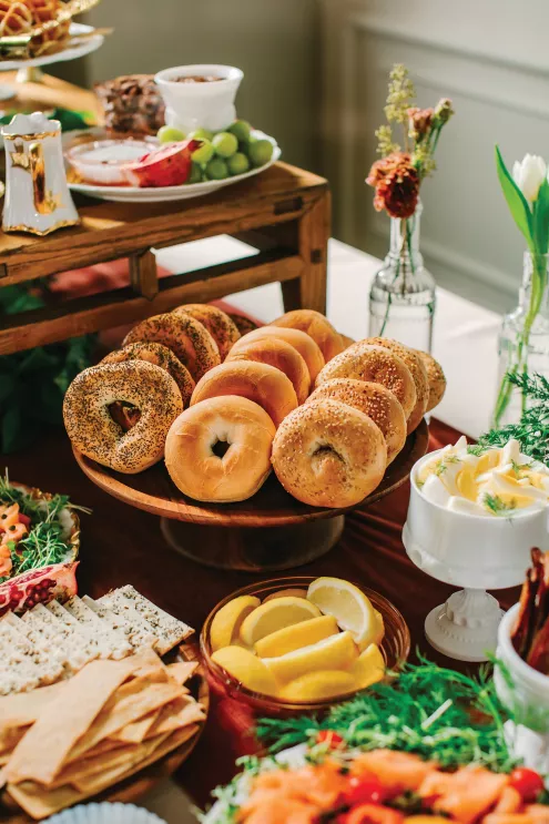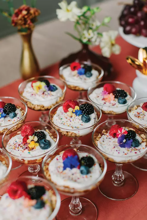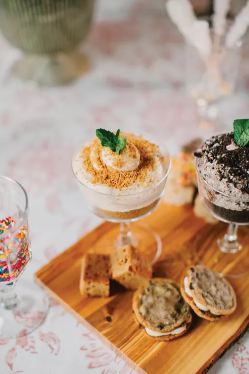 The welcome dinner is the first taste guests experience when embarking on a weekend of wedding festivities. This event offers the couple an opportunity to showcase their home state and city to those traveling from afar, explore unique appetizers and allow unfamiliar guests to connect. For this reason, a family- style meal is paramount. Inspired by the iconic flavors of Milwaukee, Saz’s Hospitality Group crafted an impeccable spread complemented by New Glarus Spotted Cow and Mudpuppy Porter from Central Waters Brewing. “We wanted to create a menu that embodies true Wisconsin hospitality — familiar enough to provide comfort but sophisticated enough to impress,” says Ana Cook, marketing director at Saz’s. “Each dish was thoughtfully selected to introduce visitors to our regional culinary identity while ensuring broad appeal, making it the perfect way to kick off your wedding weekend.”