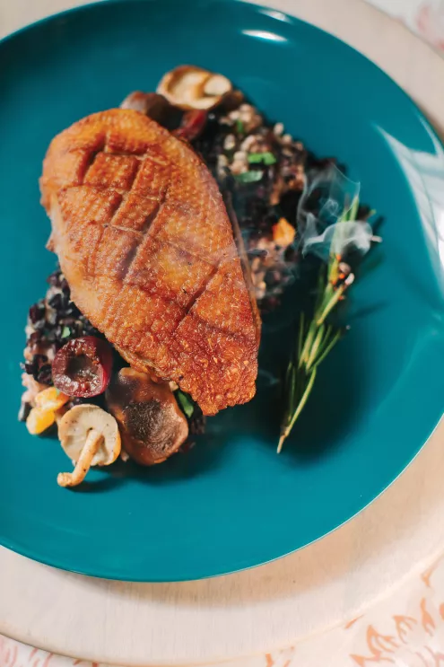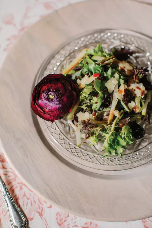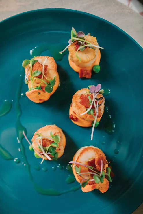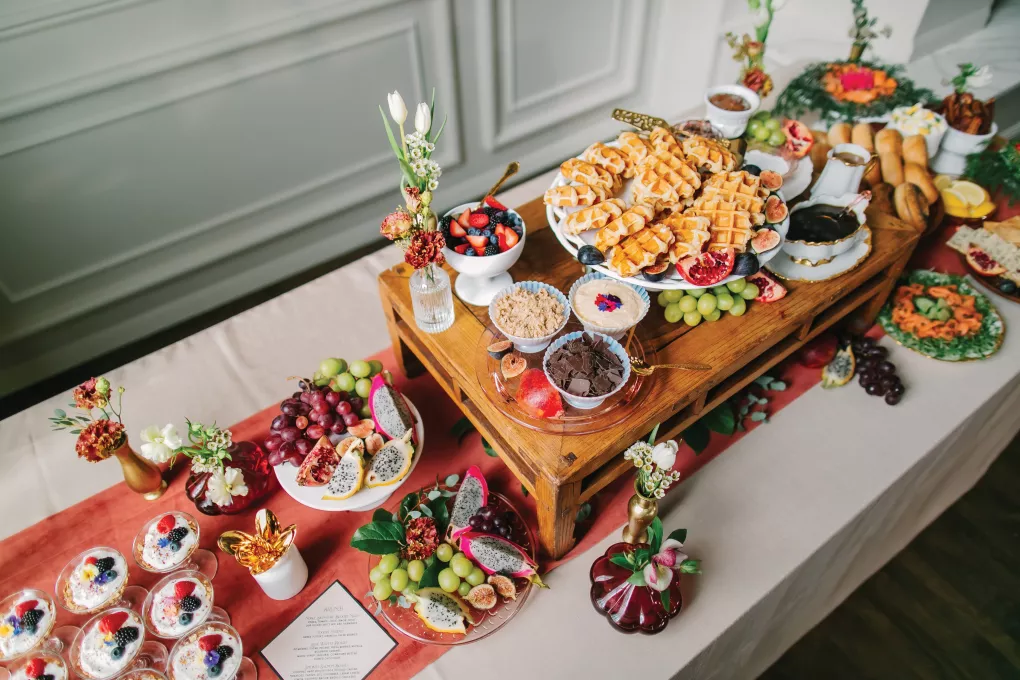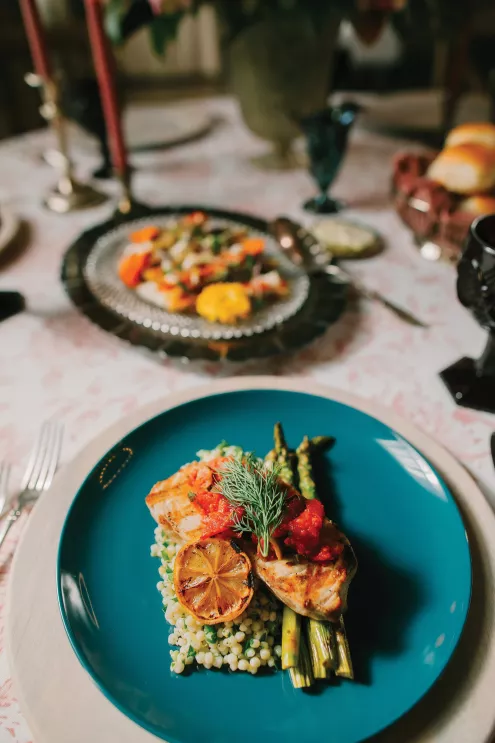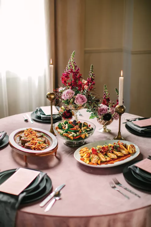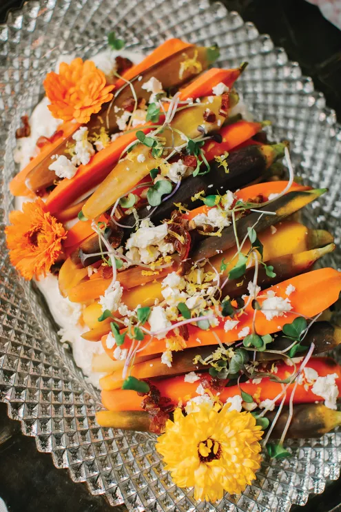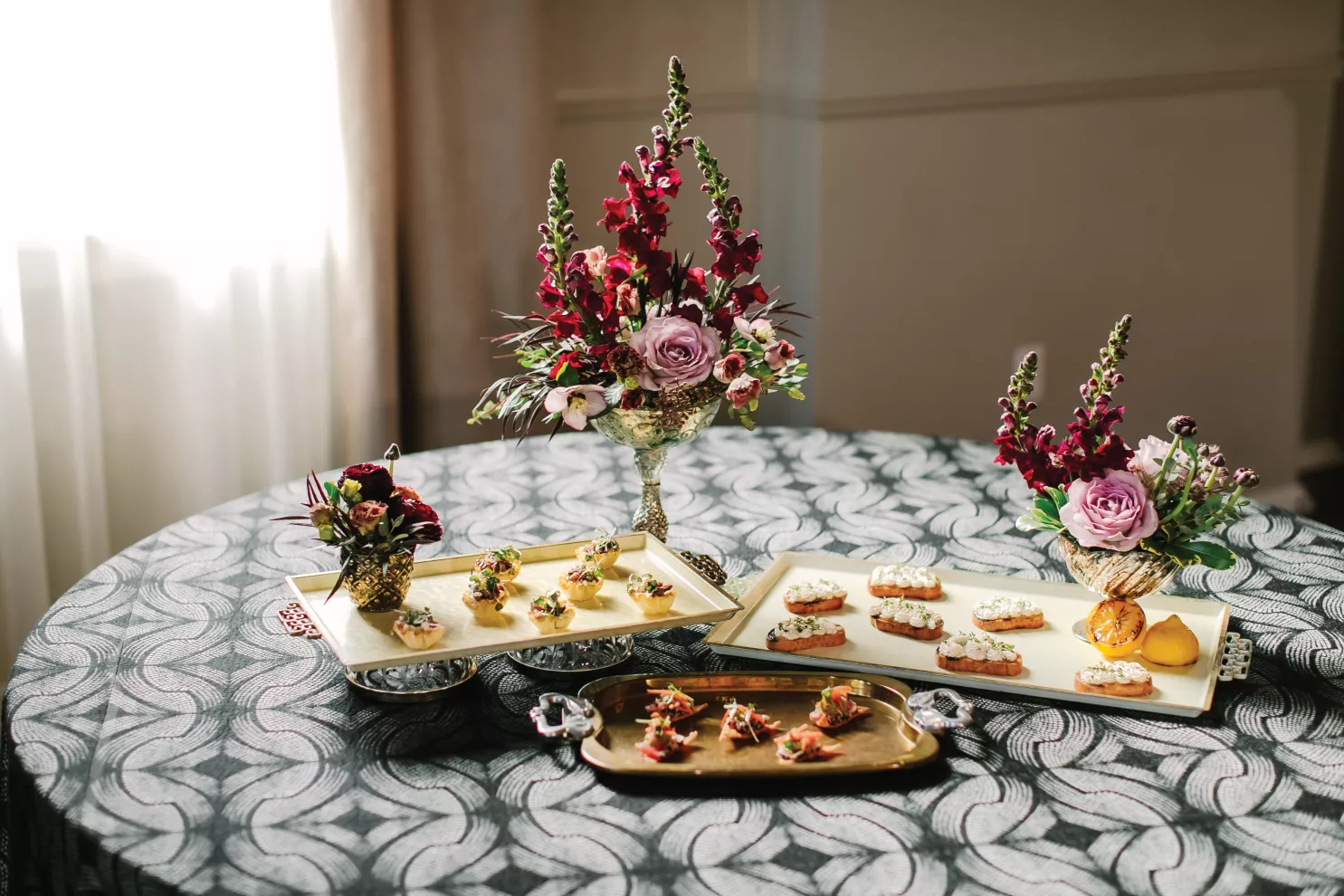 The welcome dinner is the first taste guests experience when embarking on a weekend of wedding festivities. This event offers the couple an opportunity to showcase their home state and city to those traveling from afar, explore unique appetizers and allow unfamiliar guests to connect. For this reason, a family- style meal is paramount. Inspired by the iconic flavors of Milwaukee, Saz’s Hospitality Group crafted an impeccable spread complemented by New Glarus Spotted Cow and Mudpuppy Porter from Central Waters Brewing. “We wanted to create a menu that embodies true Wisconsin hospitality — familiar enough to provide comfort but sophisticated enough to impress,” says Ana Cook, marketing director at Saz’s. “Each dish was thoughtfully selected to introduce visitors to our regional culinary identity while ensuring broad appeal, making it the perfect way to kick off your wedding weekend.”