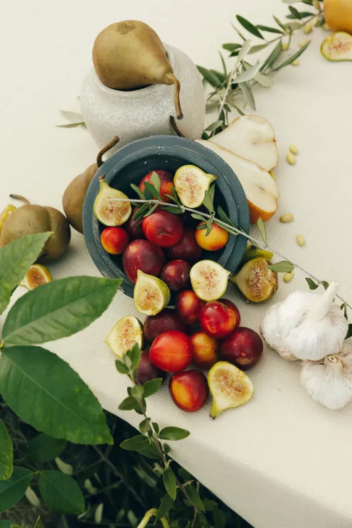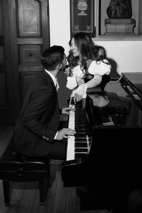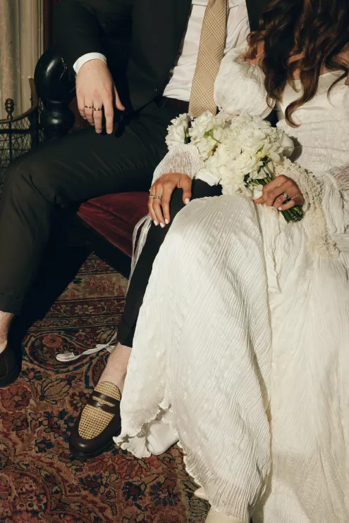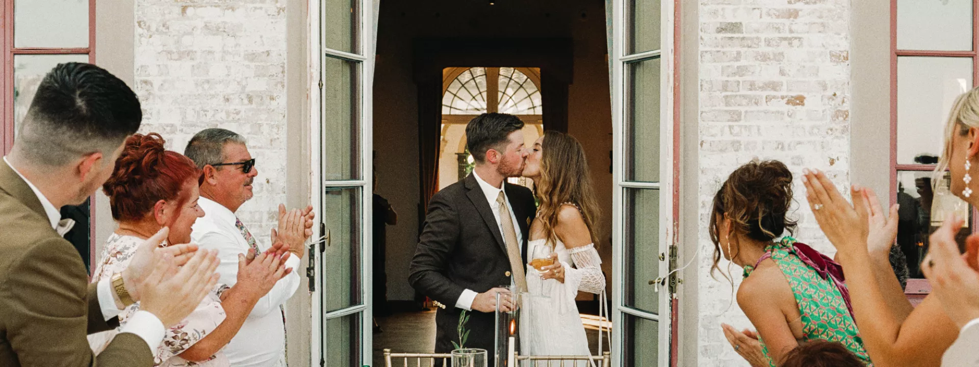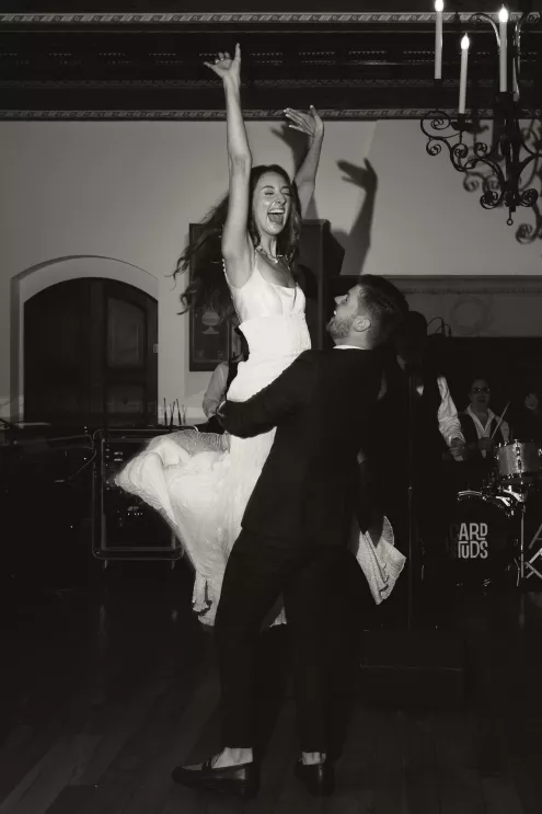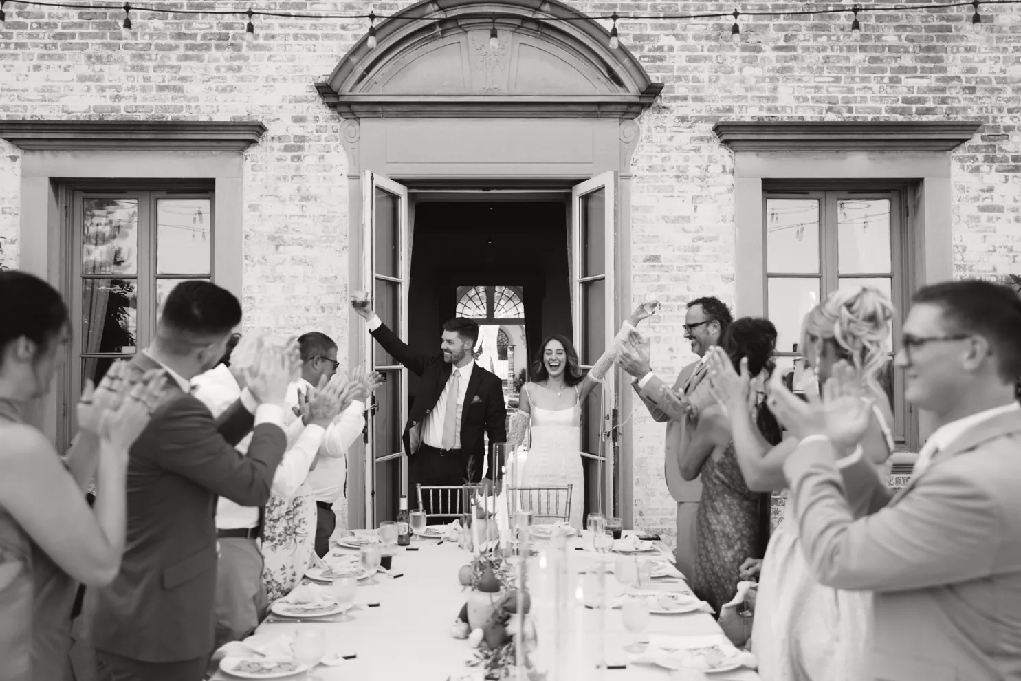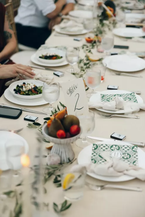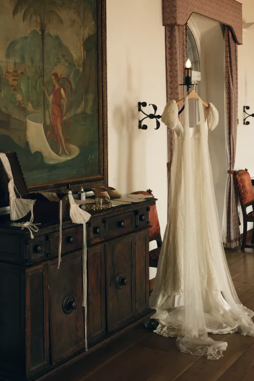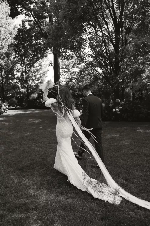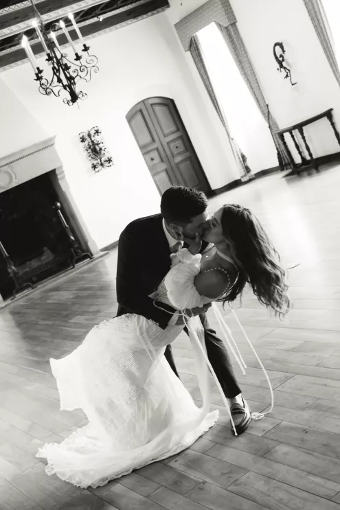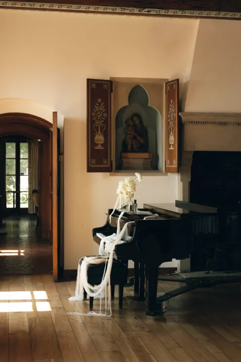 Kendall Ruchti and Andrew Ward’s celebration was a picture-perfect wedding day for a couple united by their love for architecture, art and design. Kendall, an interior designer, was set on visiting Villa Terrace Decorative Arts Museum in Milwaukee from the moment she learned about it, so Andrew, who also has a passion for architecture, knew their trip to the museum was the ideal time to propose. Two years later, it only made sense to return to the venue for their wedding. The house’s rich history and Italian-Renaissance design flawlessly matched the couple’s shared interests. Kendall and Andrew watched from the second floor of the villa as their guests arrived, feeling immeasurable gratitude for every person who attended the celebration. The ceremony took place in an enchanting, shady garden beneath the terrace in the sweet summer heat, and the couple exchanged vows in the exact same spot in the grassy lawn where Andrew had proposed two years prior. The reception unfolded up on the house’s terrace, where Kendall collaborated with M&F Floral + Décor to create the feeling of a European market with fruit baskets and lush greenery, taking inspiration from “Pride and Prejudice.” Bundles of olive branches complemented the villa’s architecture to create an Italian seaside feeling. Once night fell, the string lights draped over the terrace created a harmonious ambience as guests danced with stunning views of a moonlit Lake Michigan.