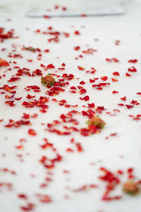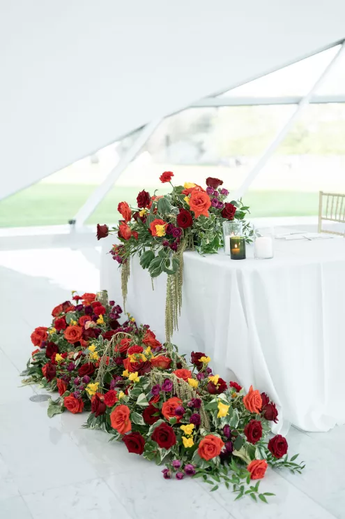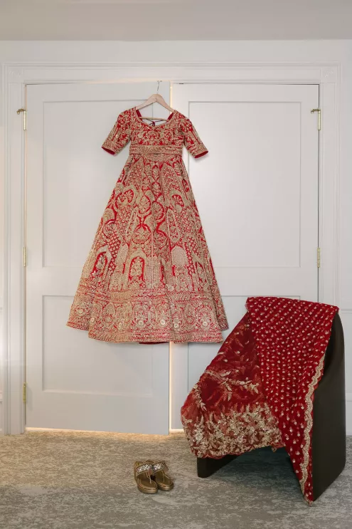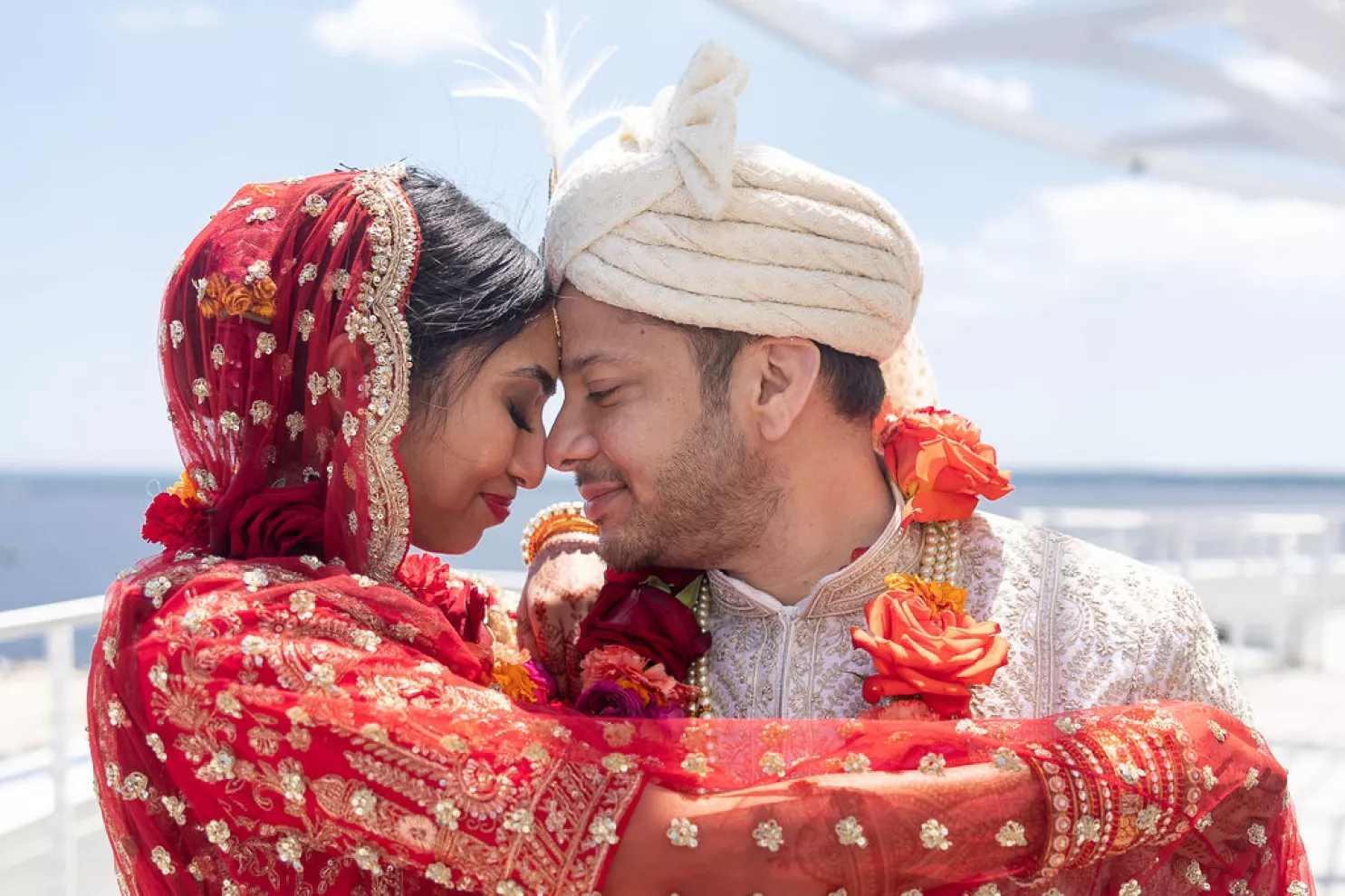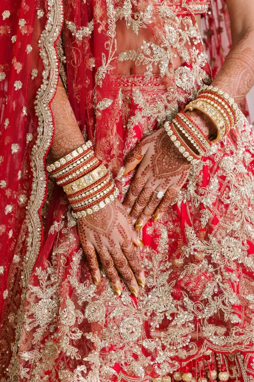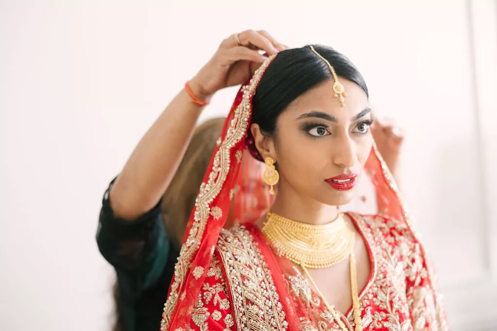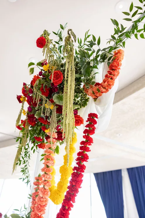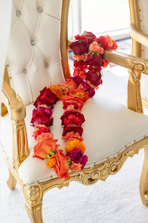 Namrata and Deep's wedding day overflowed with vibrant hues of red, orange and soft pink florals representing both sunrise and sunset