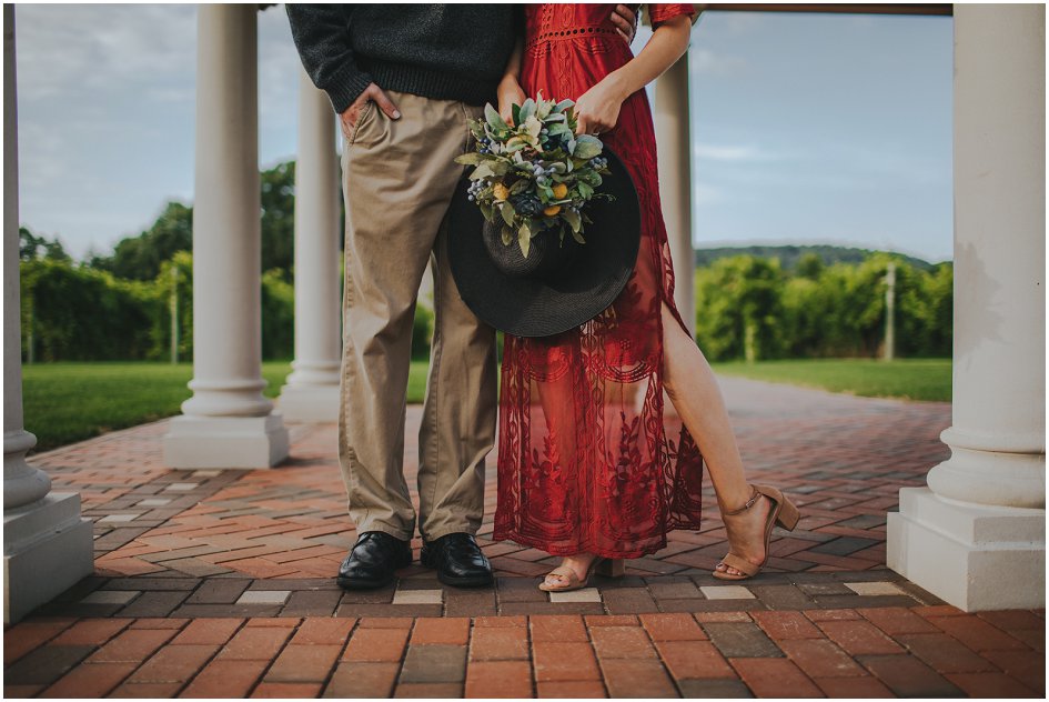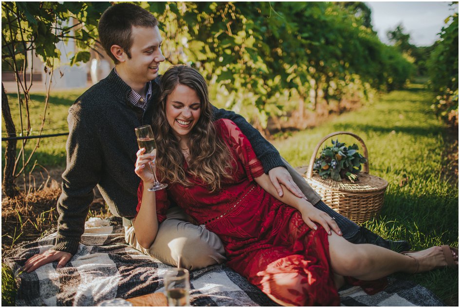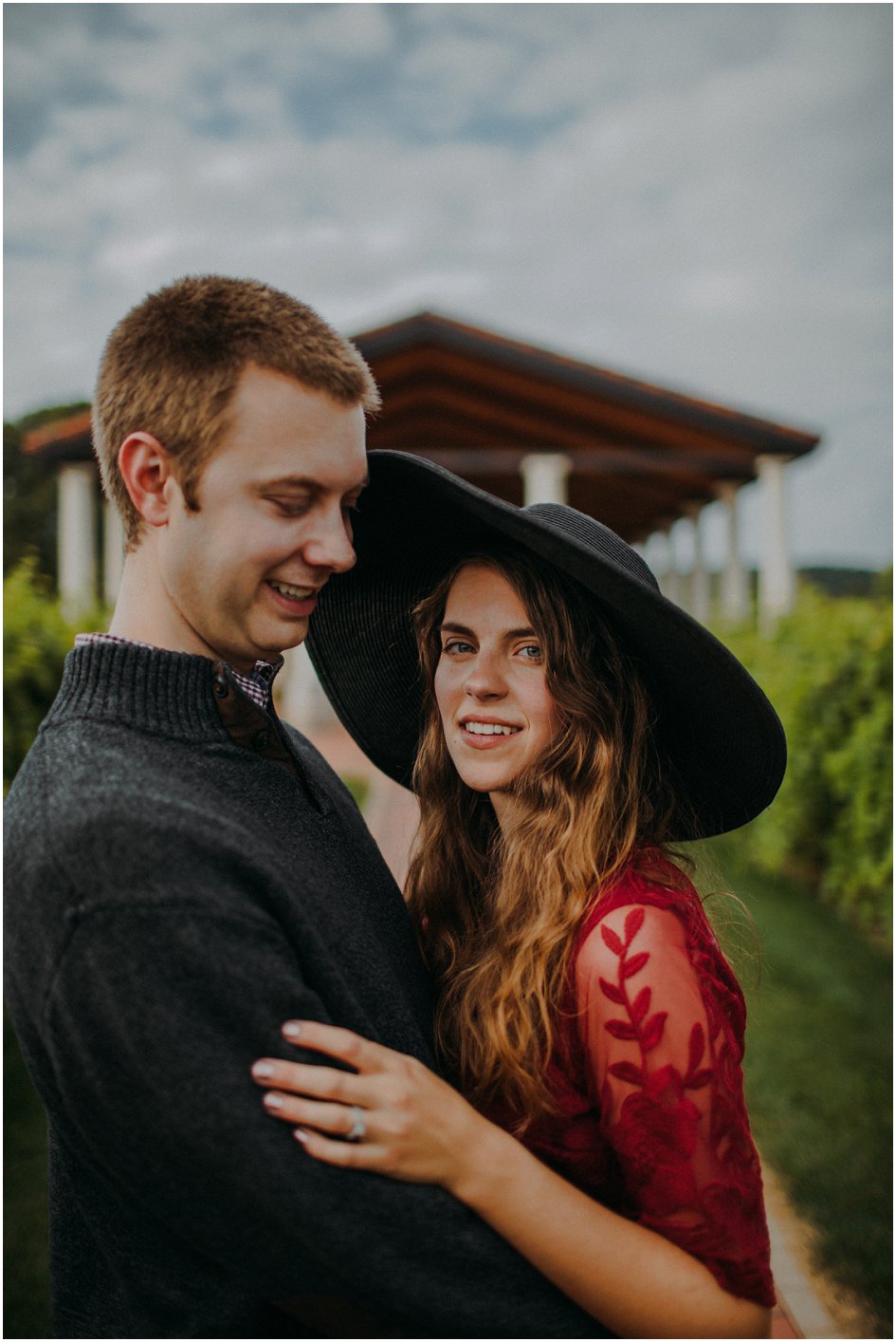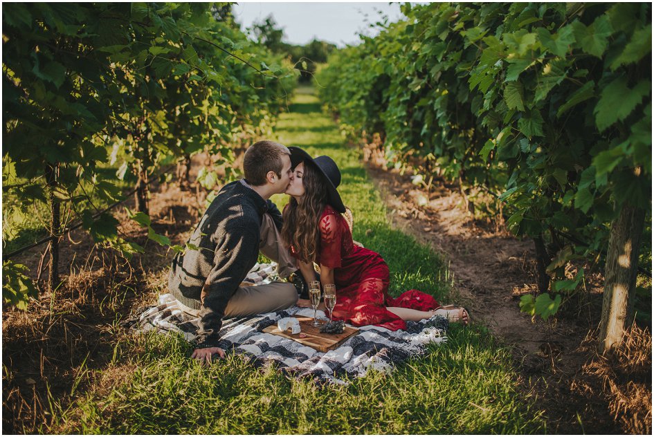 Two and a half years after tying the knot, Laura and Lance wanted to partake in Italian bliss without leaving Wisconsin. Villa Bellezza offered the couple a chance to escape into the European countryside as they celebrated their anniversary. The winery takes inspiration from the local landscapes, and the mix of stucco and stone buildings harmonize the Wisconsin setting with Italian aesthetics. Laura paired her red lace dress with an oversized black hat for a striking look. The couple started the visit by soaking in the views from the Tower Reception Hall, where they basked in the memories of their wedding day. The Vineyard Pavilion sleek columns and lavish greenery provided the perfect backdrop for their sweet photos. Making their way through the gorgeous vineyard, the couple partook in an intimate picnic. The sun set as they enjoyed grapes, wine and cheese in between the lush leaves. At Villa Bellezza, Laura and Lance were able to celebrate each other with a wonderfully romantic backdrop without having to stray too far from home.
