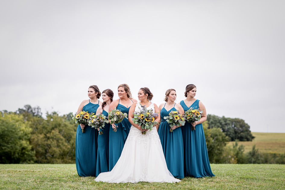 Many a love story has started on a high school dance floor—which happened for Ethan Bown and Bethany Schmitt in 2012. They attended different high schools, but when Ethan saw her, he wasn’t going to miss his chance to get to know her. Six years later, Ethan dropped to one knee by the family Christmas tree in Bethany’s parents’ house for a dazzling, holiday-inspired moment; Bethany’s dad had asked her mom to marry him in the very same spot, making the moment even more special. At an outdoor wedding at Bethany’s family’s farm, the couple had a day full of love, family, and friends. Sunflowers and eucalyptus adorned the barn, along with rustic décor that enhanced the walnut siding and weathered steel roofing. Since they both grew up on a farm, the setting was especially meaningful.