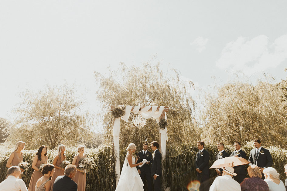 Tucked away in the fields of western Wisconsin, Hidden Meadow & Barn is a rustic retreat for couples who want to celebrate the outdoors with their wedding. For middle school sweethearts Kassidy and Marcus, the barn was the perfect place to treat their guests to a rustic yet refined day. "Every part of the day was so thought out, and turned out so elegant and beautiful," says photographer Rachel Traxler. Modern details like satin table runners and glowing Edison bulbs dotted the reception space as guests dined on pizza and beer - a combination of the couple's favorite things.