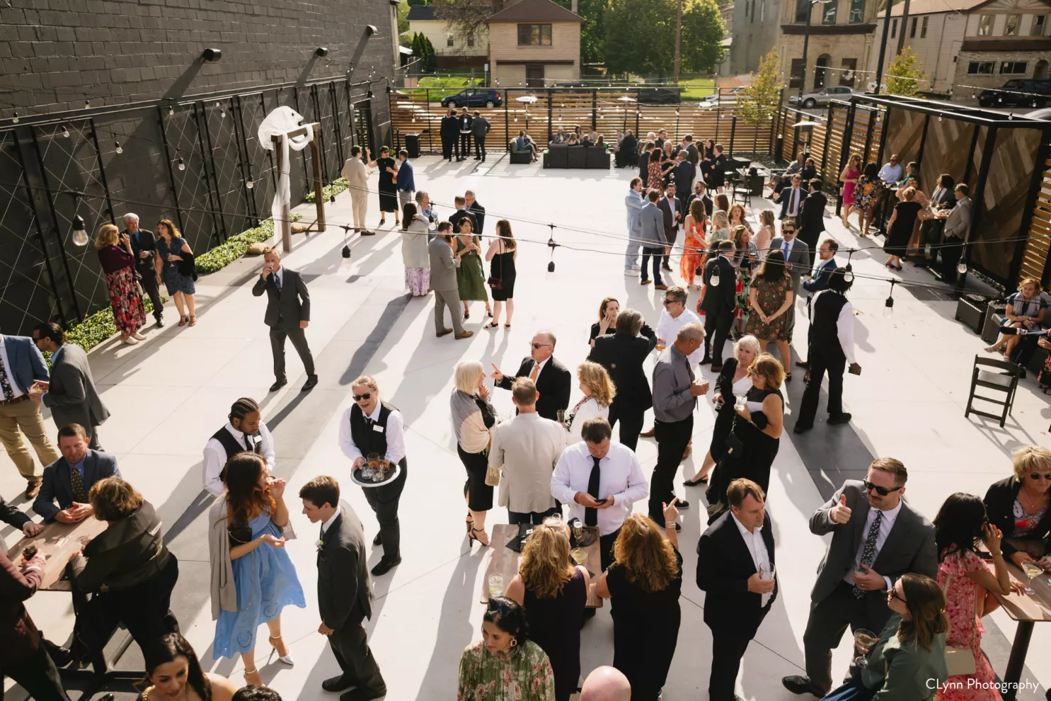 The outdoor space features a large patio, bar, and balcony overlooking the space. Complete with a reserved parking lot for event guests and tenting capabilities, our space will transform your ability to host incredible gatherings with both an indoor and outdoor space. The sky’s the limit with our open concept design, making your vision come to life bigger and better than you can imagine.