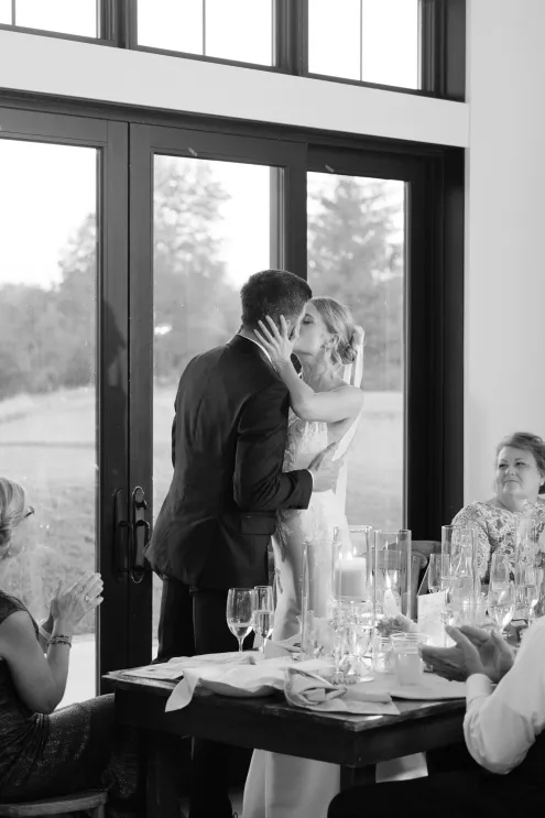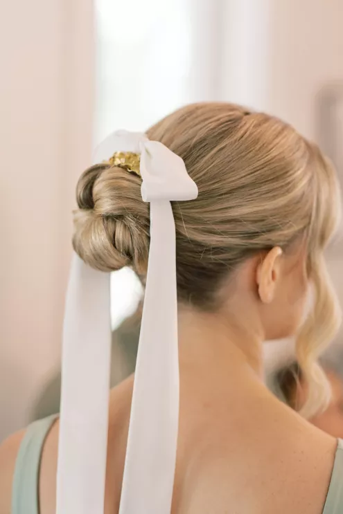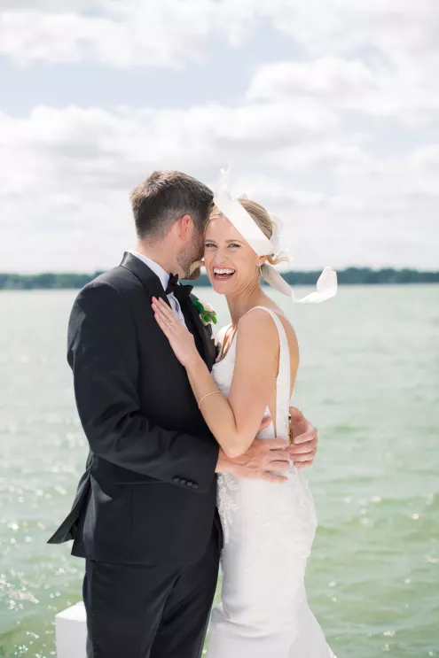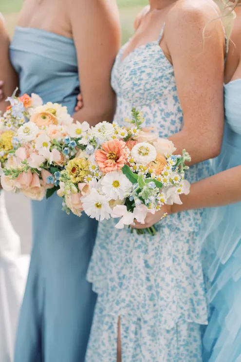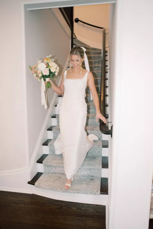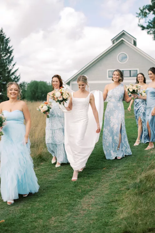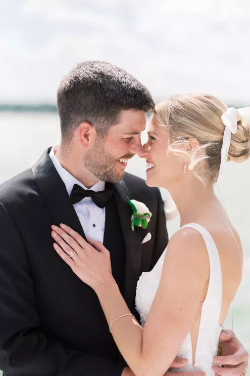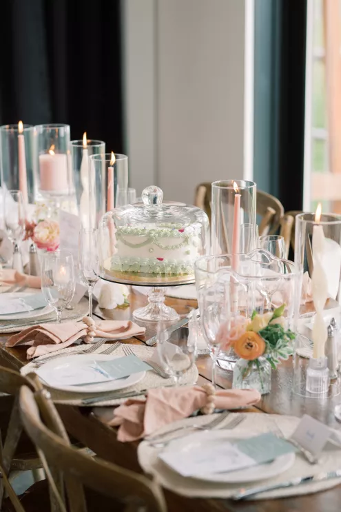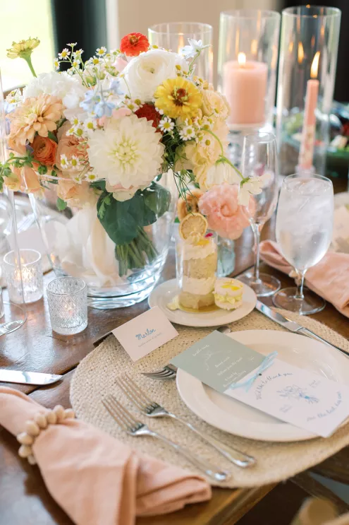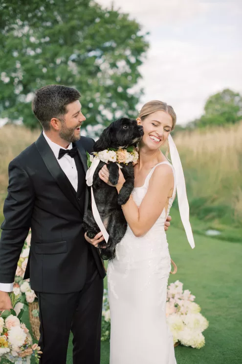 With an airy summer garden atmosphere and plenty of custom features, Rebecca Alcock and Theo Taylor’s wedding proved that experimenting with unique ideas can make any dream wedding come true. Conceptualized by the bride, the celebration replicated the feeling of a cheery summer picnic, with plenty of pale green, pink and peach hues throughout the design. The fresh flowers were thoughtfully placed in wicker baskets throughout the outdoor space. Hydrangeas, zinnias, roses and daisies from Sage Floral created colorful accents to the lush lawn. The Carriage House at Lac La Belle was the perfect venue choice, with enchanting tea lights and flawless natural surroundings that felt like a fairy tale. Sunshine kissed the entire scene, highlighting the vivid and verdant countryside. Every choice was intentional and created a wholly unique experience, like when they pressed flowers together as a unity ceremony with lovely cello music in the background. The couple signed their marriage license on each other’s backs during the ceremony, and two guests were surprised with the opportunity to serve as official witnesses – each guest looked under their chair after arriving, where the two lucky people received a present. Other special features included a mini canoe paddle that served as the guestbook and a loveseat Rebecca and Theo shared during the ceremony. The pair didn’t hesitate to push boundaries while planning, and the result was a whimsical day of festivities that could not have better met their desires and imagination.