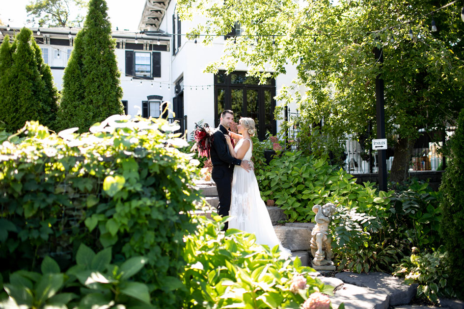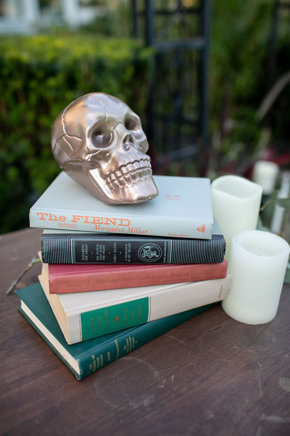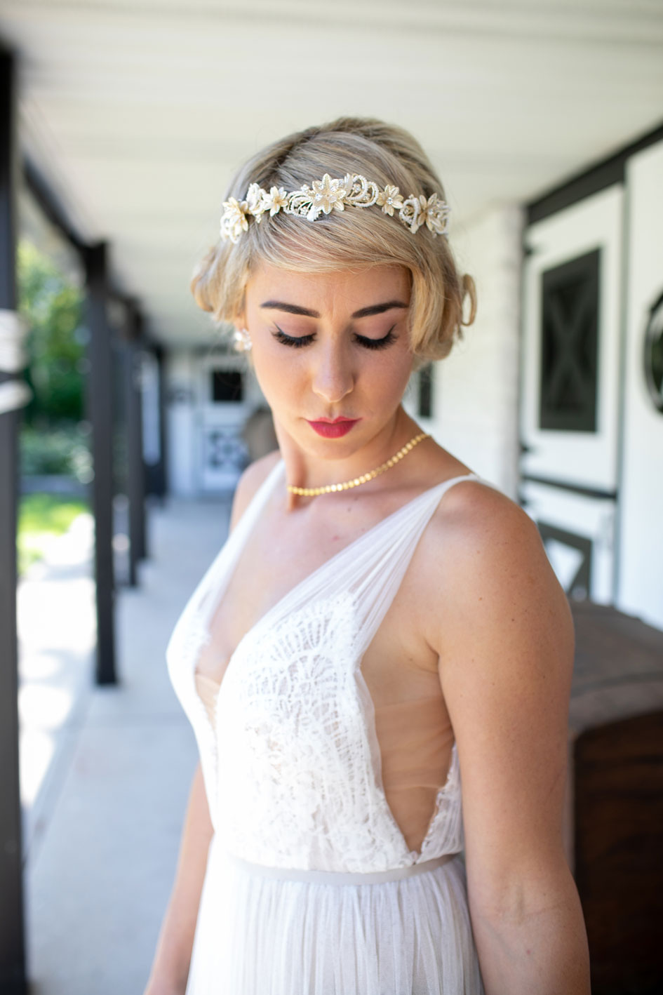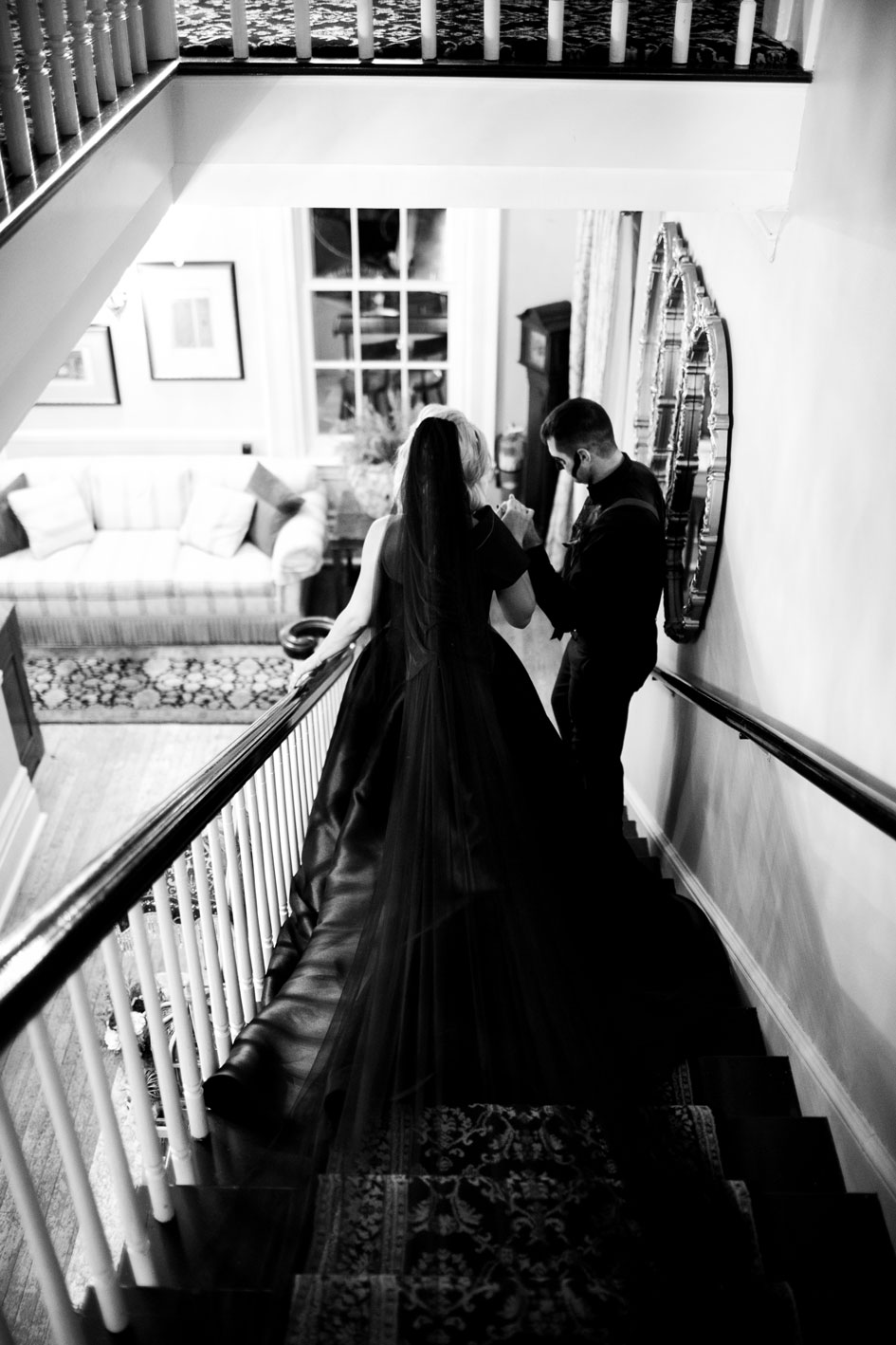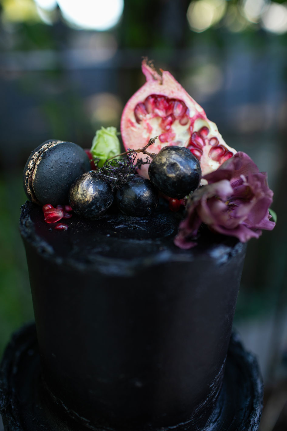 Photographer Elyse Bullard couldn't wait for the Halloween season to begin, so she got in touch with a few local vendors and began pulling together a haunted styled shoot. The history at Maxwell Mansion inspired a 1920's themed shoot for the beginning of the day, with the bride in a lacy sleeveless gown and carrying a rich red and maroon bouquet. As the sun went down, things began to change. The couple transformed into skeletal beings in black attire and toasted one another with blood-red goblets. Gold, maroon and deep purple accents glittered from the table where a black cake dripped with fruit. At the end of the evening, a vintage motorcoach arrived to whisk the couple back to the underworld.