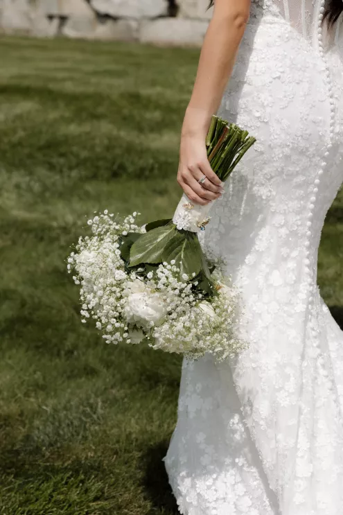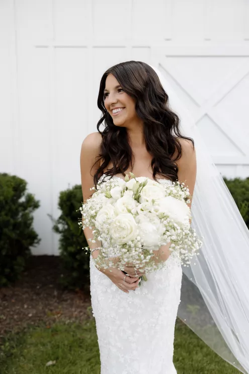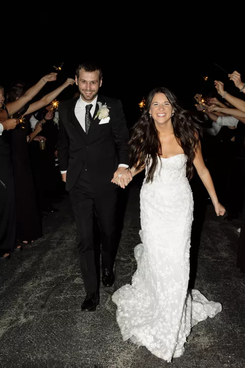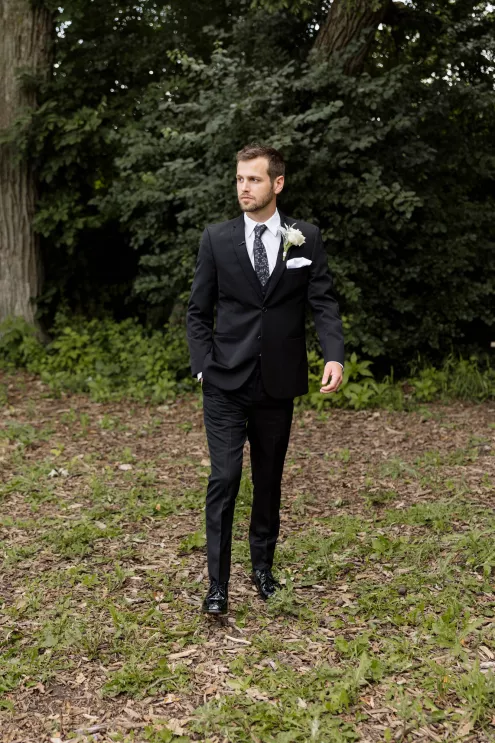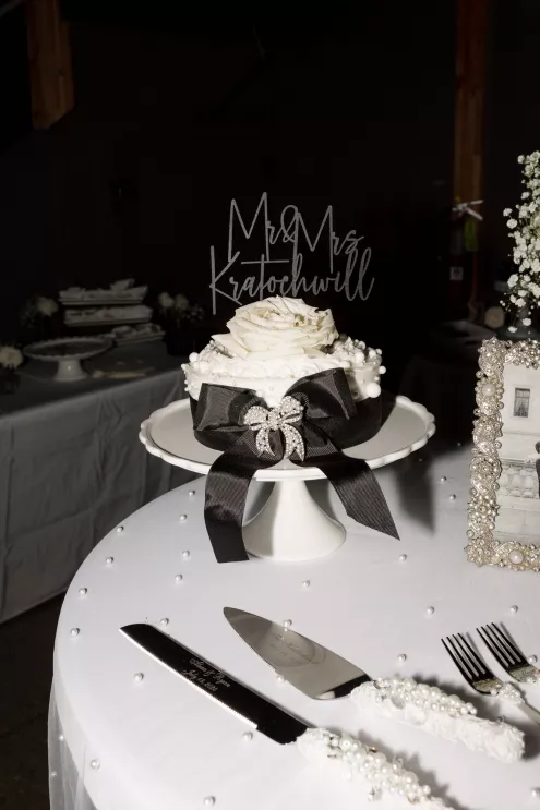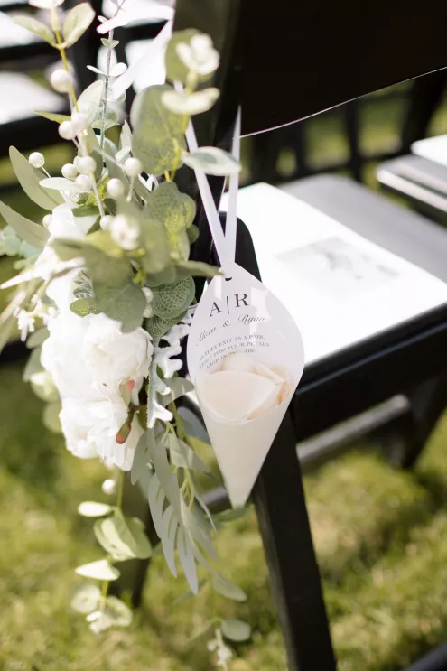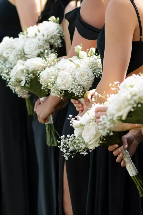 Opting for a traditional wedding day, a black-and-white palette set the tone for intimate elegance with modern details woven throughout.
