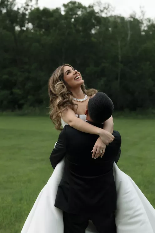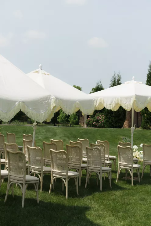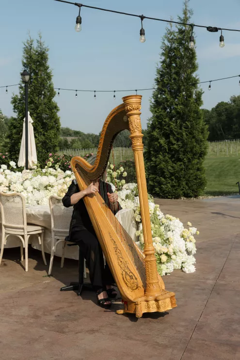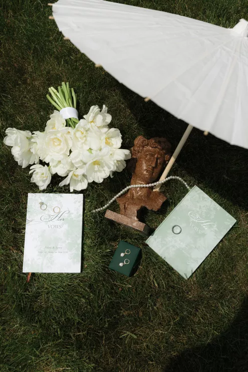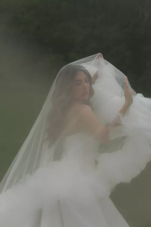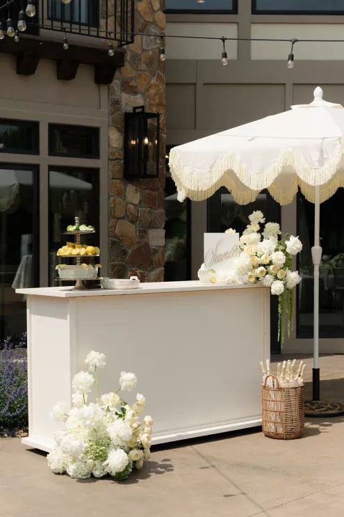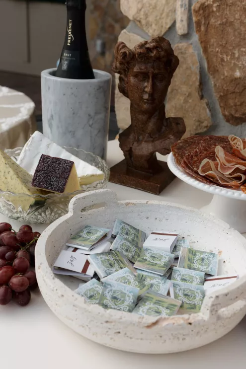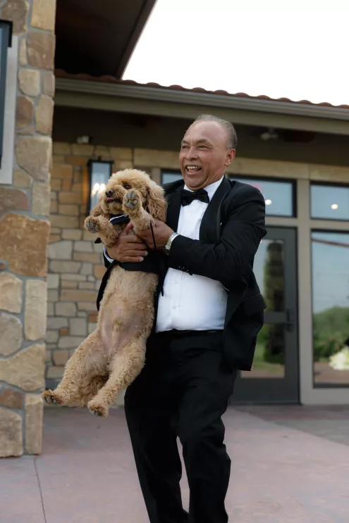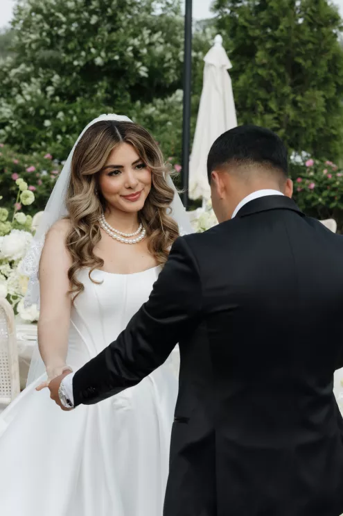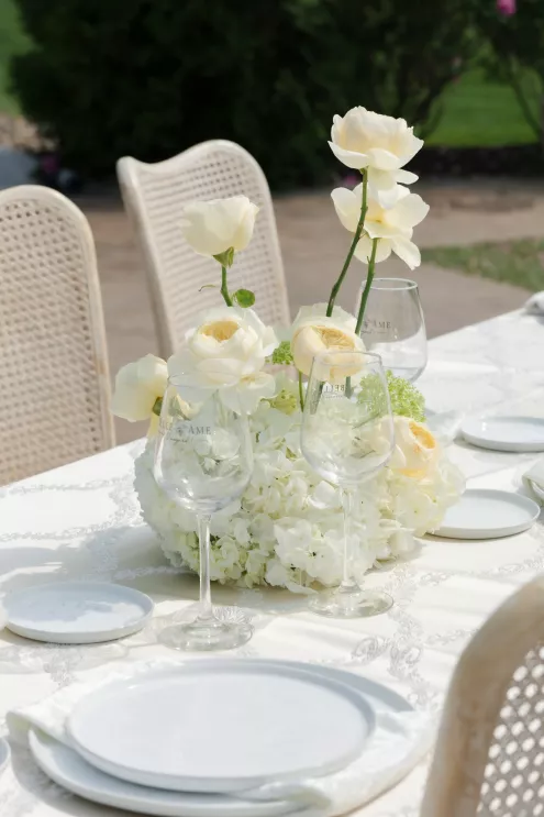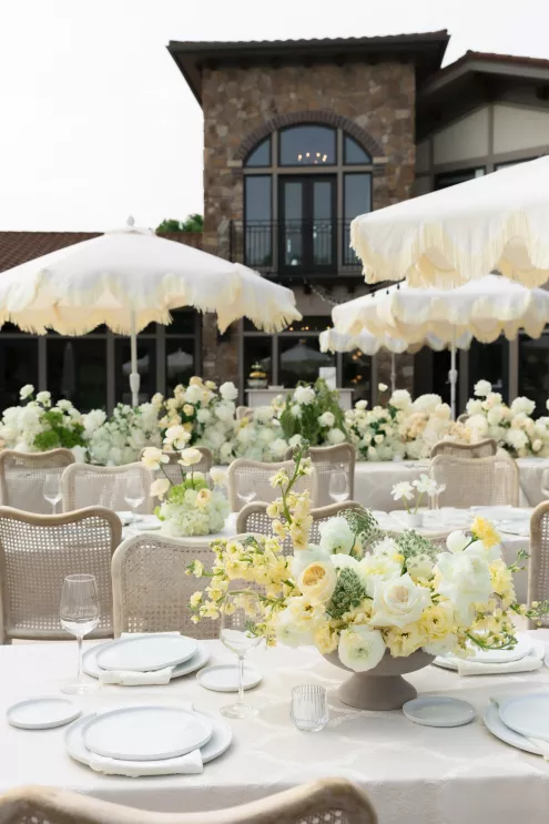 Zaira Figueroa didn't believe in marriage until she fell in love with Jerry Ariza, who swept her off her feet after a first date that had them talking into the hours of the early morning. After a decade of always choosing each other, they celebrated their love with an opulent wedding day at Belle Âme Vineyard. A masterclass of refined abundance, blooming hydrangeas and creamy garden roses sprouted in organic installations throughout the celebration. Starting the day with an intimate vow exchange, tears of joy and pure love were shed as the pair pledged their love to each other in private. Following suit, the outdoor ceremony, shaded from the sun with vintage, yellow umbrellas, invited Zaira and Jerry's loved ones into their commitment to one another. The star of the evening was their beloved puppy, Reese, dressed in a miniature tuxedo and clearly thrilled to be a part of every aspect of the day. In a Tuscan-inspired design, the courtyard reception featured dreamy clouds of garden-style florals with hints of butter yellow and green viburnum to create an earthy feel. Guests were welcome to graze on a custom charcuterie board and sip signature cocktails accompanied by delicate harp music. A portrait of classic elegance, Zaira and Jerry rang in the start of their forever together with opulence, whimsy and a boundless love.
