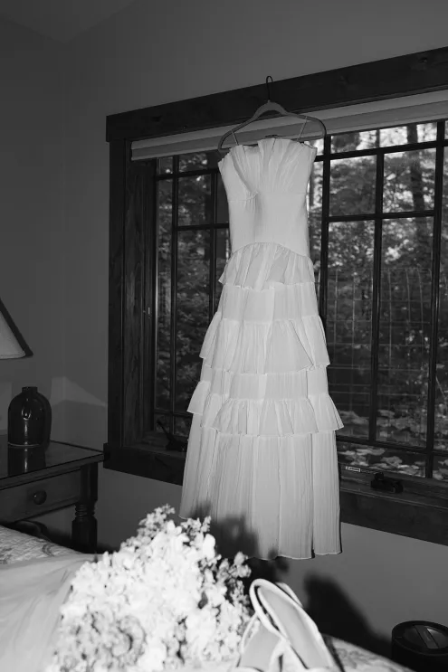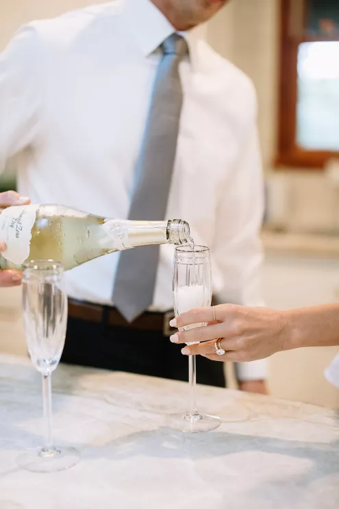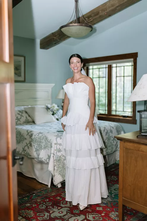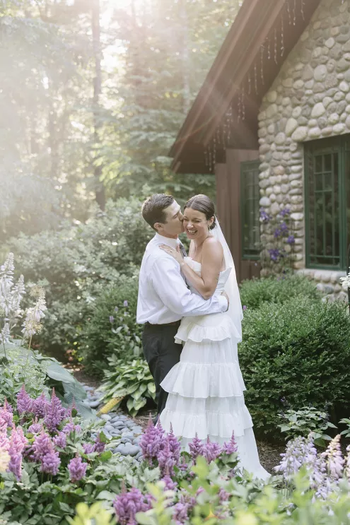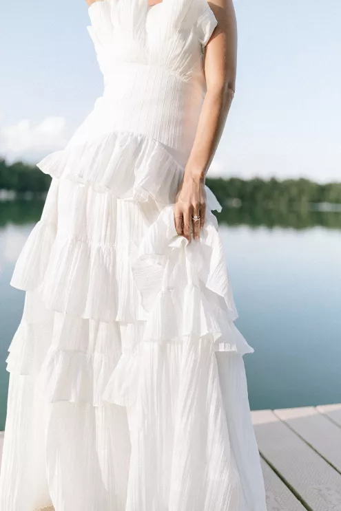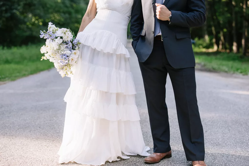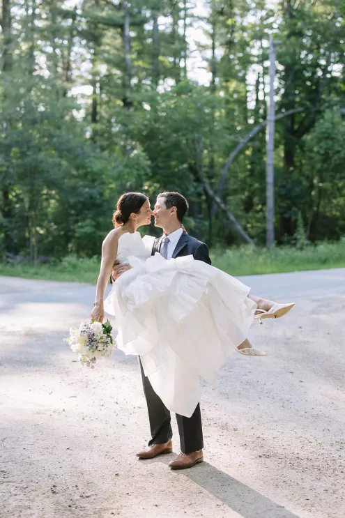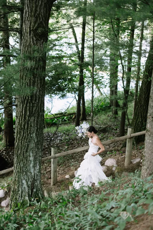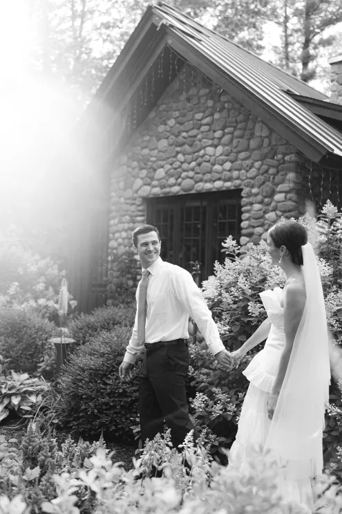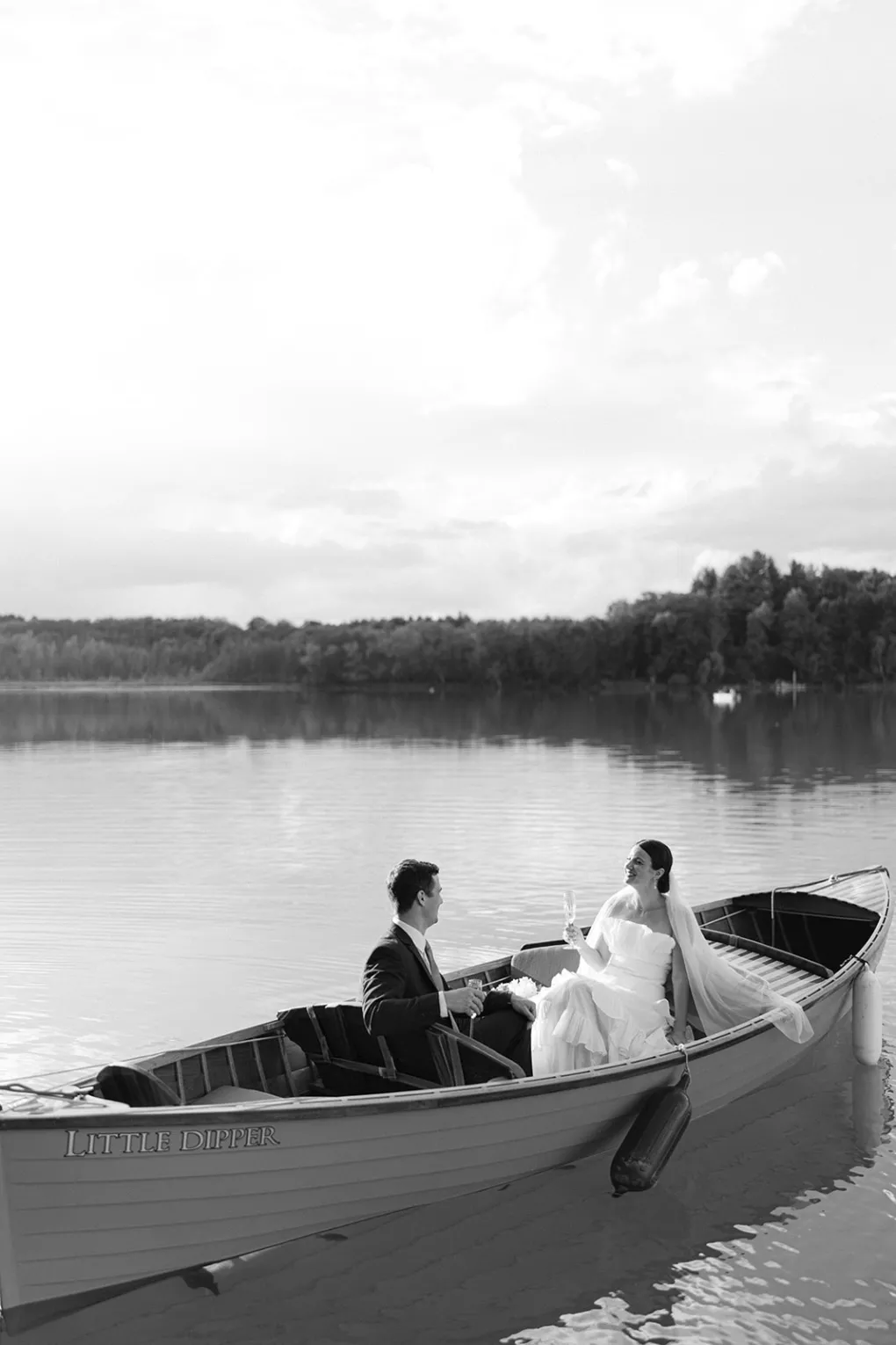 After Jessica and Daniel's 48-hour road trip first date, the pair knew they wanted to spend the rest of their lives by each other’s side. The intimacy of that date was reflected on their wedding day, the happy couple opting for an ultra-private elopement with only their parents bearing witness at Daniel's family cabin in Wautoma. Surrounded by tall pines, Jessica married the love of her life in a soft, layered gown with an ivory silk wrapped bouquet of white and lavender blooms in hand. In celebration, the newlyweds hopped in a vintage wooden boat named "Little Dipper" and floated on the water with champagne in hand, soaking in the first moments of married life. To cap off the special evening, Jessica and Daniel cut a vanilla frosted cake decorated with ripe summer berries in the glow of romantic candlelight, under their parents' loving gaze.