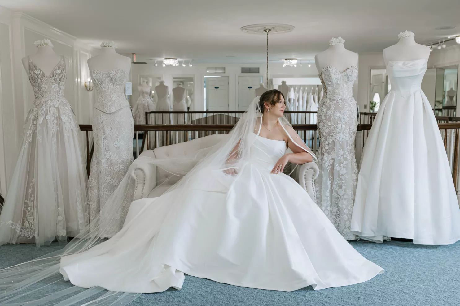 "Growing up in Madison, it was always the dream to get a wedding dress at Vera's. When the time finally came, the experience didn't disappoint! Vera's sets you up on their portal ahead of your visit, allowing you to pick what styles you like in a 'look book' ahead of your appointment. My stylist was an exceptional consultant and had reviewed my look book ahead of time. She made us feel comfortable and with her guidance, my perfect dress was the first one I tried on. I can't recommend Vera's enough!" -Emily B.
