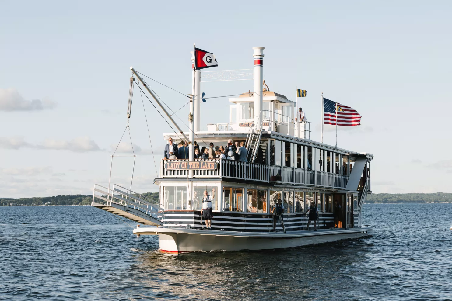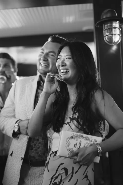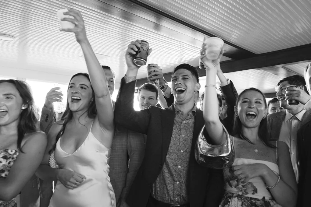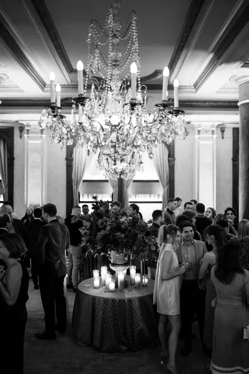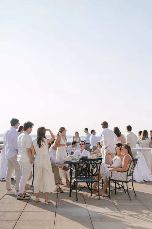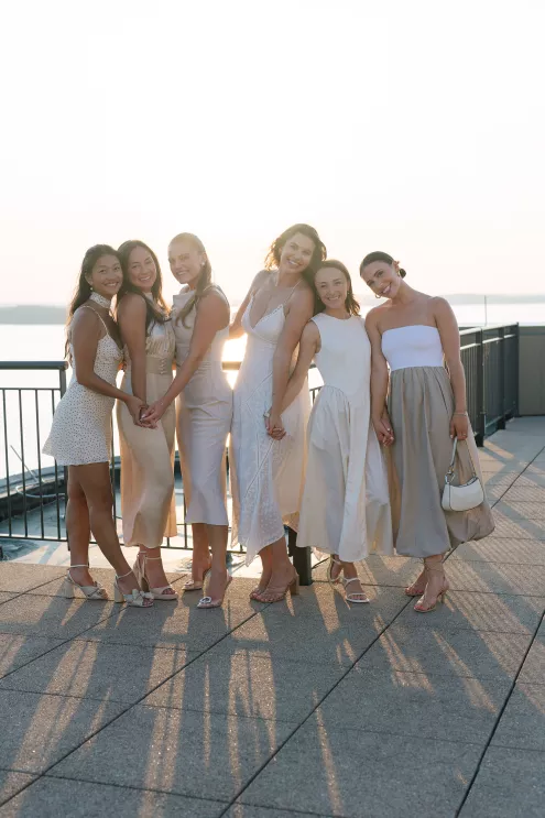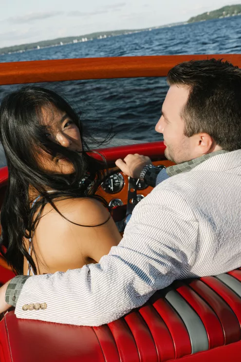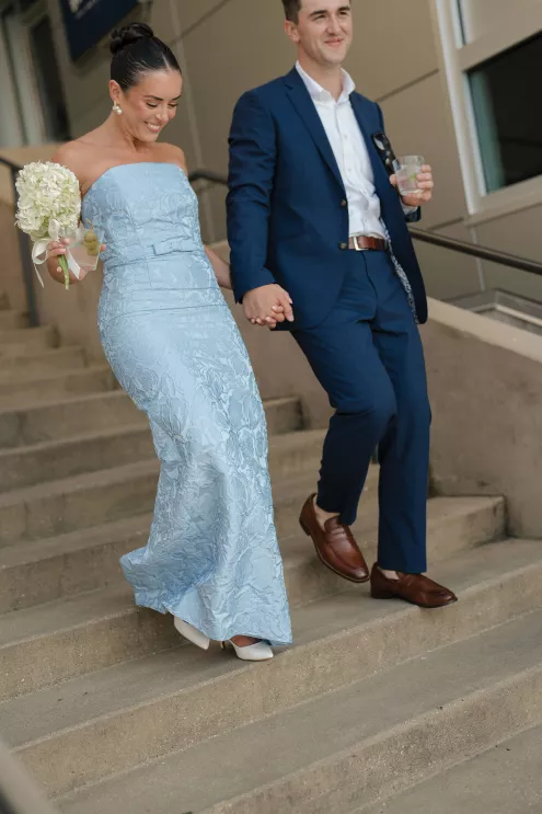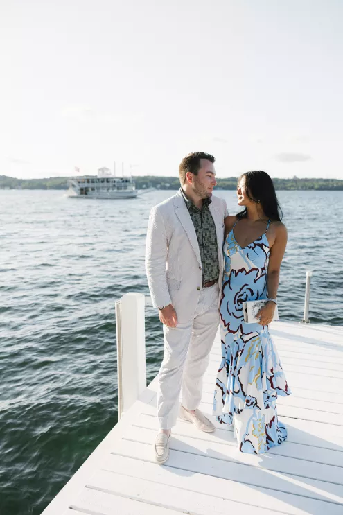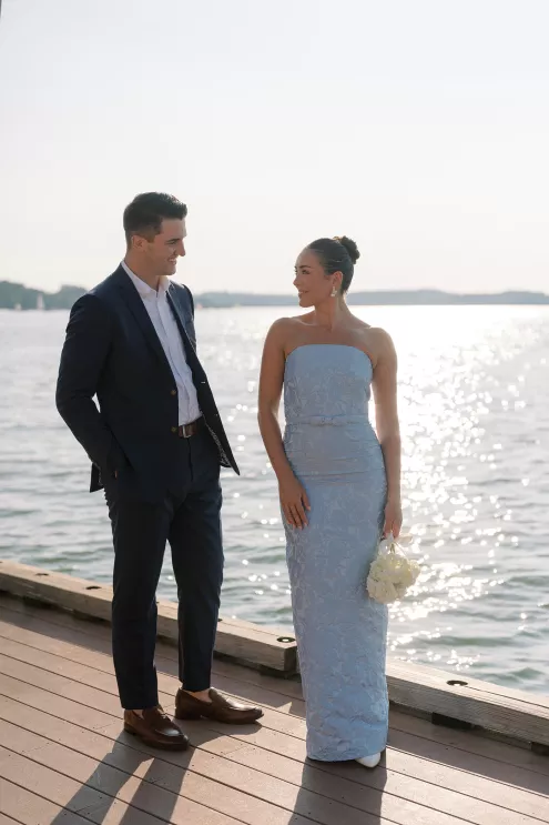 Abby and Wyatt set sail on Lady Lake to host a welcome party etched with personal details and intention. “The couple wanted the entire weekend to perfectly encapsulate their personalities with a focus on hosting the best party for all of their loved ones,” says Jaffe Wojcik, owner of Graceful Events. And that they did—with a sunset cruise on the water complete with hors d’oeuvres, speeches and new connections. Abby and Wyatt also took advantage of the extra celebration to show off their impeccable fashion taste—Abby in a chic floral dress accessorized with a bag inspired by Olympia Le Tan and Wyatt in a dapper seersucker number. Not only did their bash allow loved ones to connect before the big day, but it also immersed guests into a weekend-long experience rather than a one-day event.