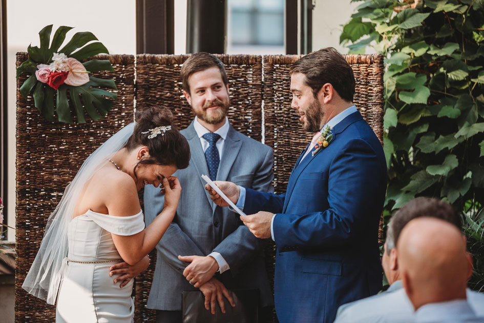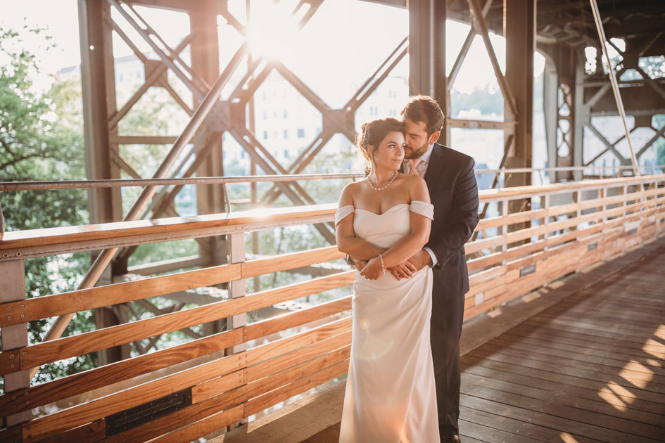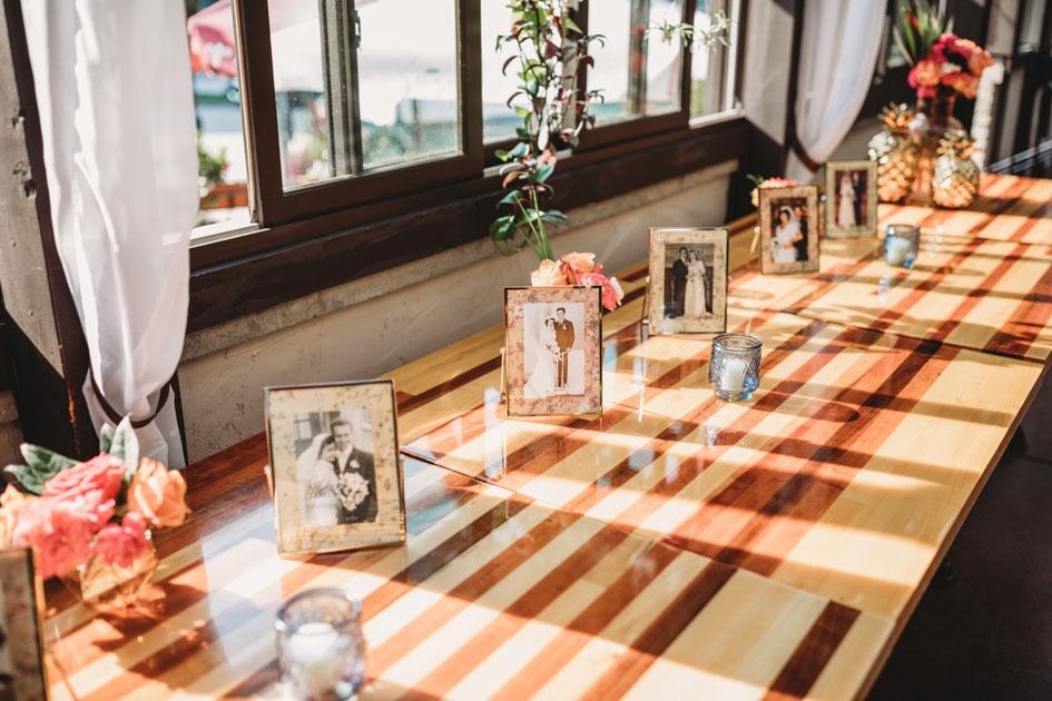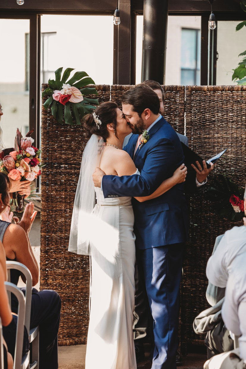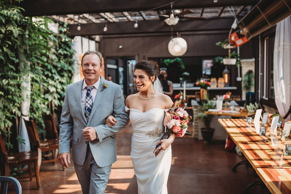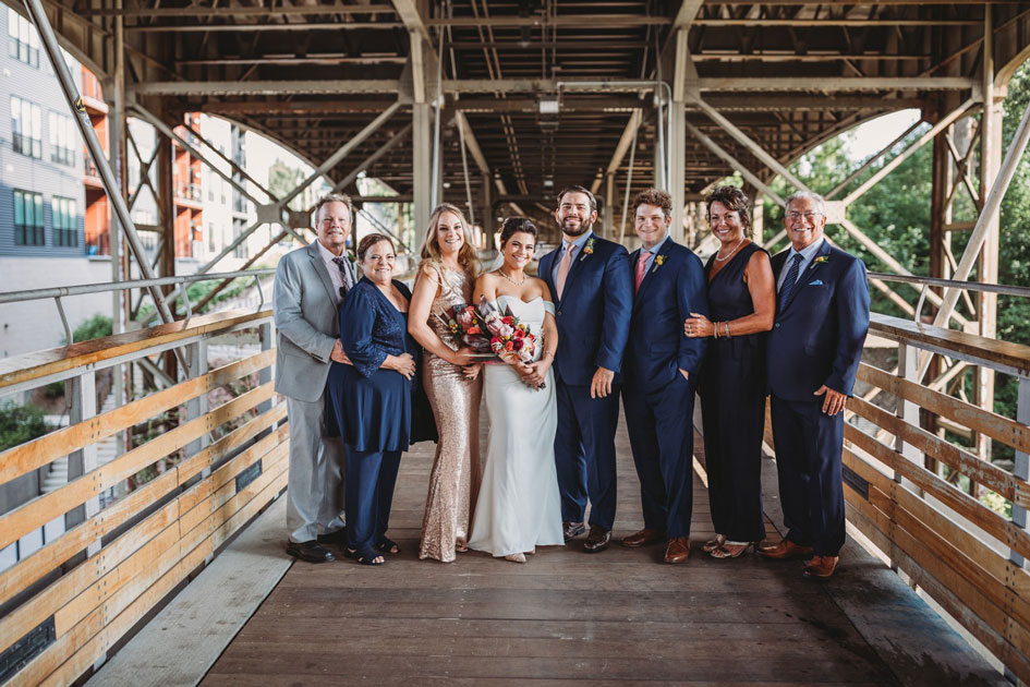 Two years later, Adam and Callie held their first look inside the same brewery that brought them together. After a few photos, they stopped to pour a beer for a tour group before heading over to their wedding. Following their inimate ceremony at DiModa Pizza, close family and friends gathered for a fun-filled evening of dinner and drinks. For the groom, the memory that stands out is receiving his wedding band and finding it was inscribed with the words his grandfather wrote in every love letter: "always and always, I'll love you, darling."