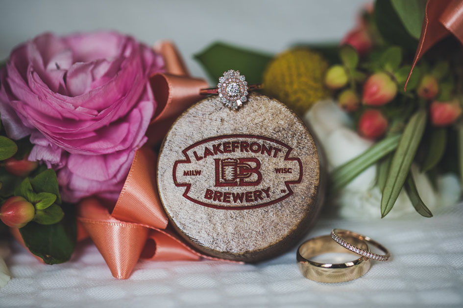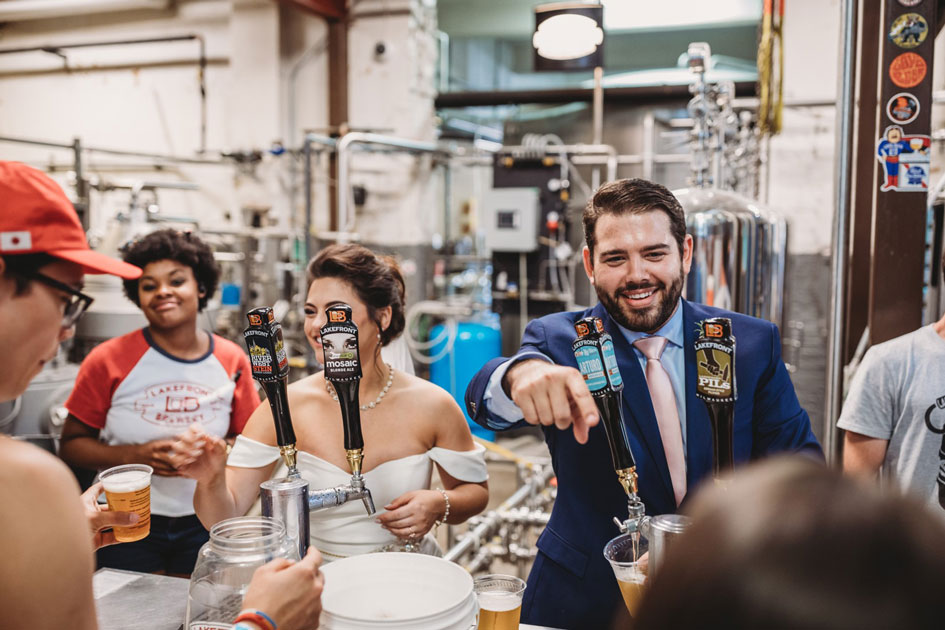 In 2016, Adam, a tour guide at Lakefront Brewing, invited a girl named Callie to come take his tour after they met online. Enjoying the fact that he could get paid and go on a date at the same time, Adam soon realized that he was talking to his future wife. The two shared some cheese curds and a drink after Adam clocked out, "and life has been a never-ending date for the two ever since," he says.