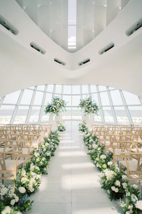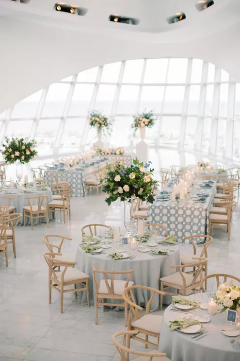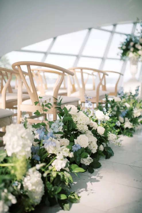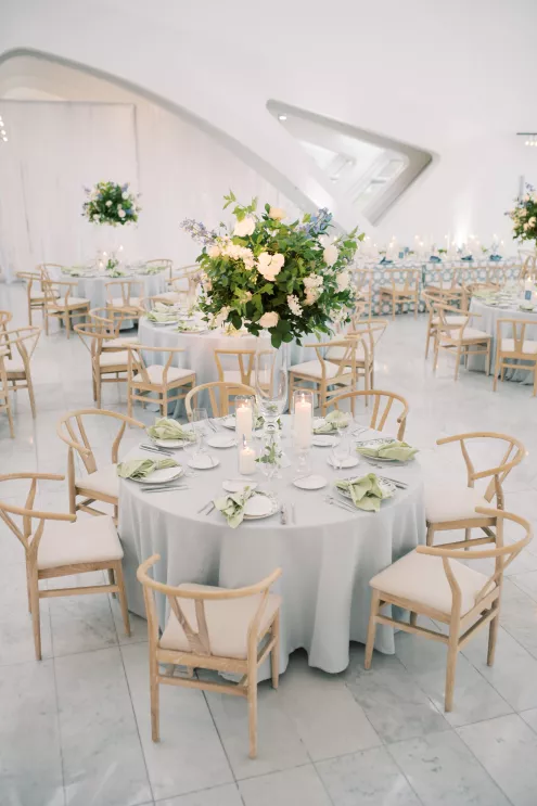 Couples should plan ahead: Sally recommends securing your wedding florist 12–18 months in advance and planning a full design preview 6–12 months before the big day. These previews — complete with linens, place settings and mock florals — give couples a tangible look at their wedding vision.