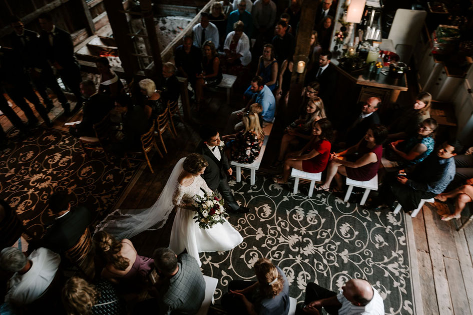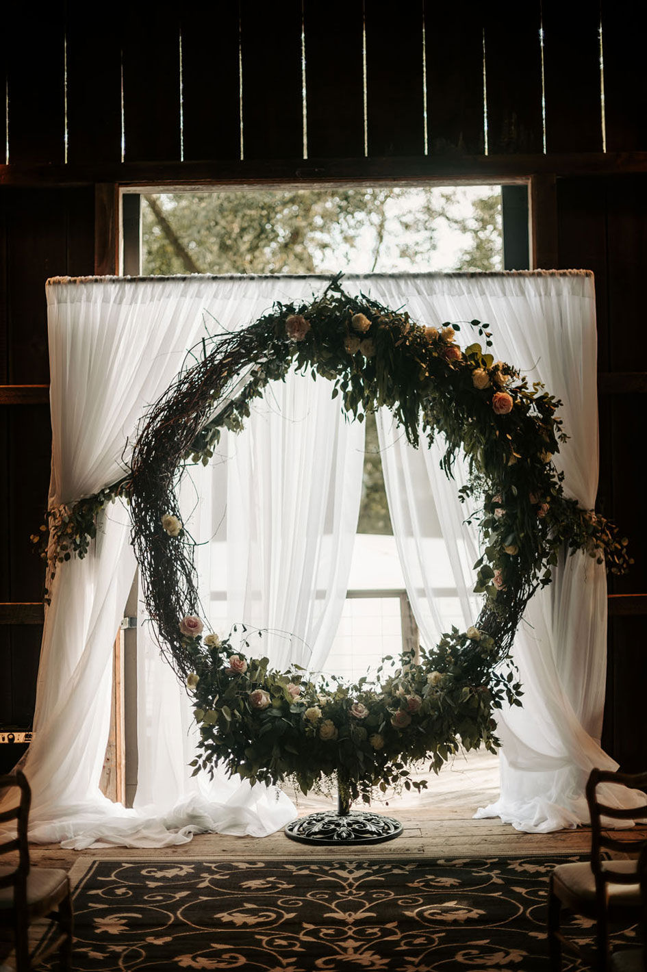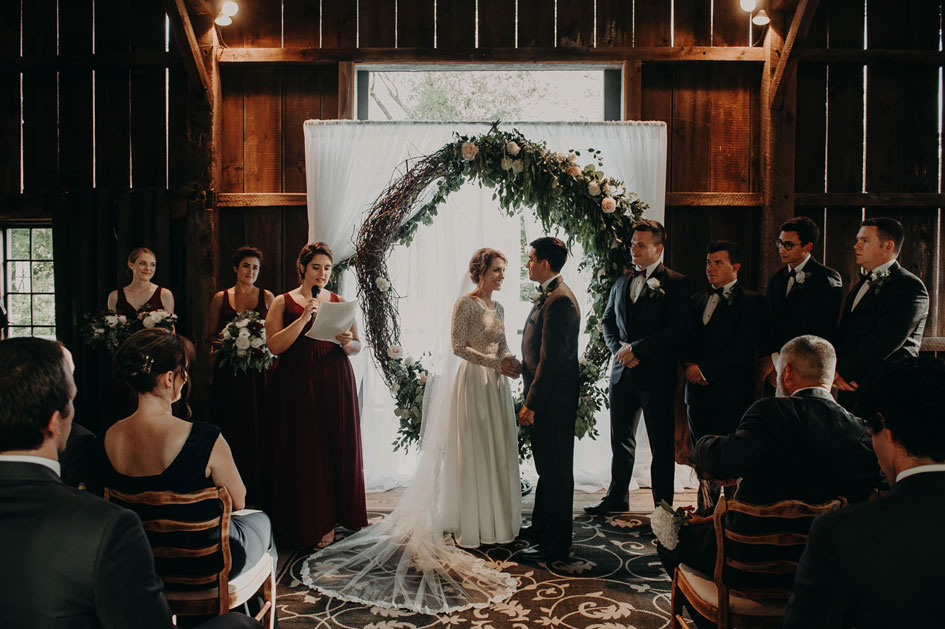 Nicole and Kurt had a long engagement after meeting in school, so Nicole had the chance to plan her dream wedding. The result is a cottage-chic wedding filled with meaningful vintage details - lots of lace, photos of loved ones and rosy floral accents. The day's humidity meant that the outdoor ceremony had to be moved indoors, but the team flawlessly pulled off a rustic barn wedding complete with rugs on the ground and a show-stopping backdrop.